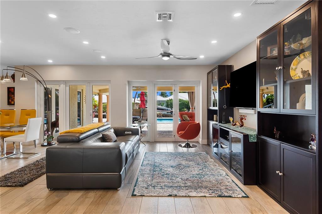 Sought after Landings waterfront community home, 85 feet of deep waterfront on wide canal, professionally remodeled with all impact windows. Great home for entertaining with an open floor plan, custom cabinetry Chef's kitchen with quartz counter tops, natural gas range and custom built bar area. Only minutes to the beach with new landscaping, oversized covered patio area with MosiquitoNix, maintenance free pool deck and built in grill. Home is wired for audio/video and has a Sonos indoor and outdoor surround sound system. Second canal in from the intracoastal.