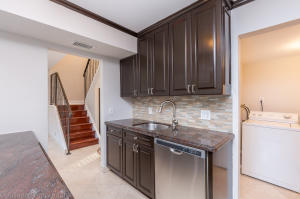 Beautiful updated townhouse in East Boca Raton. Freshly painted, brand new stainless steel appliances, granite counter tops, designer glass mosaic back splash, saturnia marble floors with custom inlays & dark wood cabinetry. All real wood flooring on the stairs and all of the second story. Full size washer and dryer. This end corner town home is very light and bright with extra windows. Private large laundry room with full size washer and dryer. Perfect location in the community only steps to the pool and clubhouse. Close to Beaches, shopping & highways. Two pets permitted by Condo Assocation - each pet not to exceed 60 pounds @ the time of maturity.
