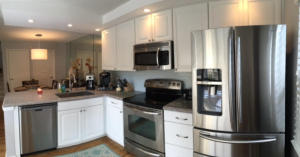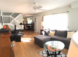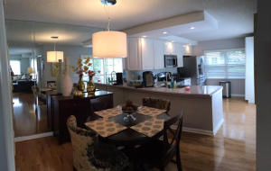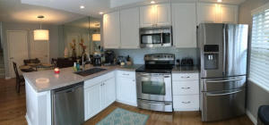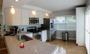 LAKE CLARKE SHORES TOWNHOUSE TASTEFULLY REMODELED. Kitchen renovated in 2014, quartz countertops, slow close cupboards, glass back splash, food pantry cupboard, stainless steel Samsung French Door refrigerator, stainless stove,dishwasher,microwave, single basin stainless under mounted sink (16 x 30) with Moen faucet, new garbage disposal, LED lighting, 3 INCH vinyl sliding plantation shutter doors, new garbage disposal...TRULY A MUST SEE! The large private fenced patio provides a pleasant addition for dining, grilling and outdoor activities. New air conditioning in 2007.Insulation replaced in attic 2012.New bathroom faucets and toilets in bathrooms on second floor. Shaw laminated WOOD flooring downstairs. Folding Hurricane Shutters ON ALL WINDOWS. THE TOWN IS A FRIENDLY PLACE.