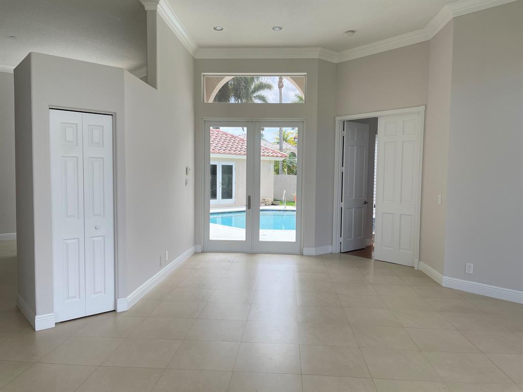 Move in ready - can close quickly!, Single story, private courtyard, lakefront pool home, volume ceilings, separate 1/1 office or guest house, fenced back yard.New roof 2020.Freshly Painted interior.French doors with hurricane impact glass.Updated kitchen, granite counters and backsplash, Stainless Steel GE Profile appliances, custom pantry pullout cabinets.Updated bathrooms, closets. New washer and dryer 2020.