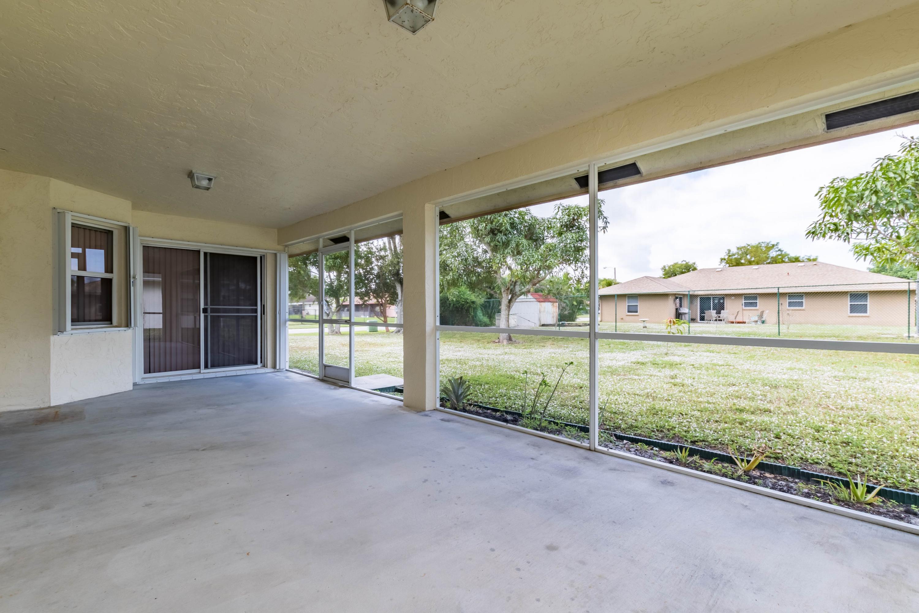 Spacious 3 bedroom, 2 bathroom, and 2 car garage home on a large .30 acre corner lot in La Mancha. Cathedral ceilings thru-out the livings area and tile flooring. Large screen and covered patio area overlooking the backyard. Full hurricane protection with Accordion shutters for all the windows. Split bedroom floor-plan. Great Royal Palm Beach neighborhood with no HOA fees and excellent Palm Beach County schools.