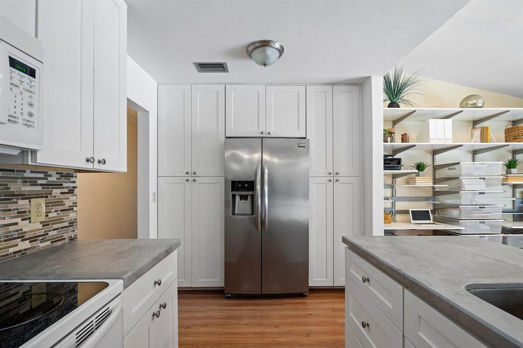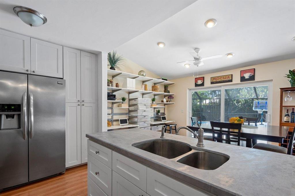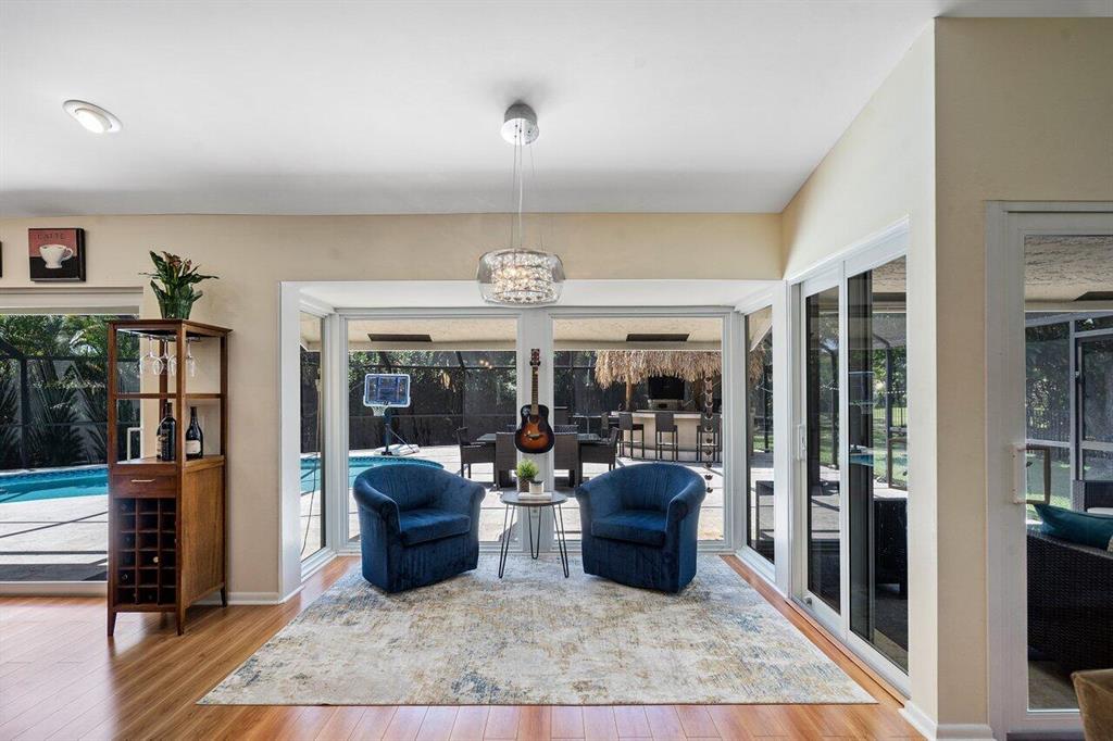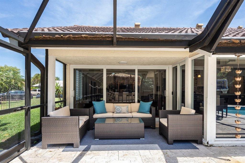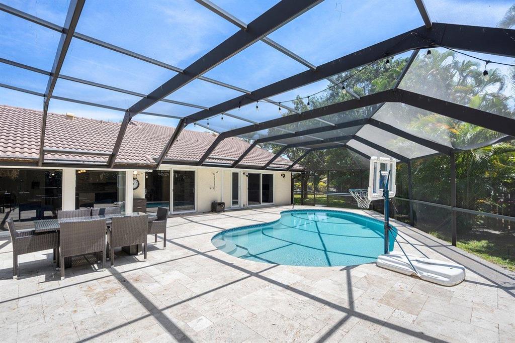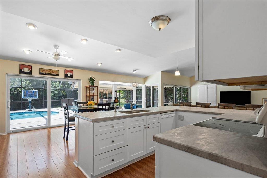 Fantastic remodeled home in Timbercreek! Rarely available, open floor plan with Vaulted Ceilings, extremely light, bright, open and airy. Abundant features throughout including 3 bedrooms, 2 bathrooms, all HURRICANE Impact Windows and Sliders, smooth ceilings throughout, both Bathrooms remodeled, huge screened pool and patio area with a $30k Tiki hut includes refrigerator, TV, and bbq grill, Tiki Hut has underground electric and water drain line. HURRICANE rated garage door (2018), garage has a split AC unit adding over 400 sg ft of under air space, S-tile roof (2002), HVAC (2010), Tankless hot water heater (2018), huge 12,812sf lot, pool and patio recently resurfaced, newer salt water pool filter system, newer sprinkler system, large storage shed, 2 large side yards have plenty of room