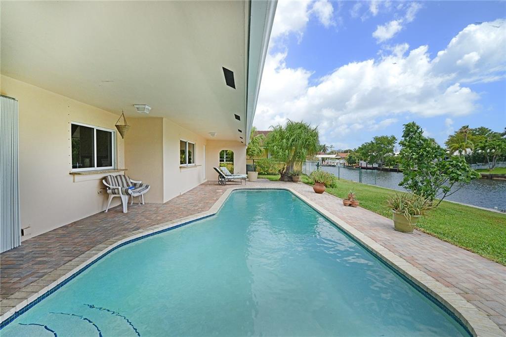 Location! Stunning cul-de-sac home in Lake Estate (located in one of Fort Lauderdale’s most sought after areas, adjacent to the Landings) with 90' of waterfrontage. This 3BR/3BA was renovated with fine craftsmanship & attention to details: bow windows/crown molding/hi-hat lighting/tile flooring throughout, custom kitchen with loads of cabinets/breakfast bar topped with granite. Beautiful Cabana bathroom with cedarwood walls. Open floor-plan includes lots of windows bringing in sunlight, and displaying stunning views of pool & waterways. Bring your boat and retreat to this tropical paradise! 2 taller fixed bridges allowing bigger boats, just minutes to the Intracoastal & beach! Fruit trees, new AC, water filtration, waterproof system on roof. Measurements are not guaranteed.