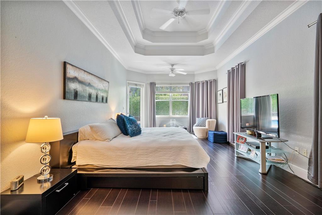 This beautifully maintained & updated home is located in one of Coral Springs most sought after gated communities on a pie shaped cul-de-sac lot! Features include top of the line finishes with a foyer entrance, formal living & dining rooms, family room, crown molding, tray ceilings, remodeled laundry room & bathrooms, stunning light fixtures and fans and wood plank flooring. The kitchen has white cabinets, quartz counters, a center island, double ovens, Bosch appliances and a SS sink. The master suite has a sitting area, his & her built-in closets and a spa like bathroom with a frameless glass walk-in shower, a stone soaking tub, dual sinks, wood vanities and quartz counter tops! Enjoy the brick paver covered patio & the tropically landscaped pool! South Florida Living at its best!