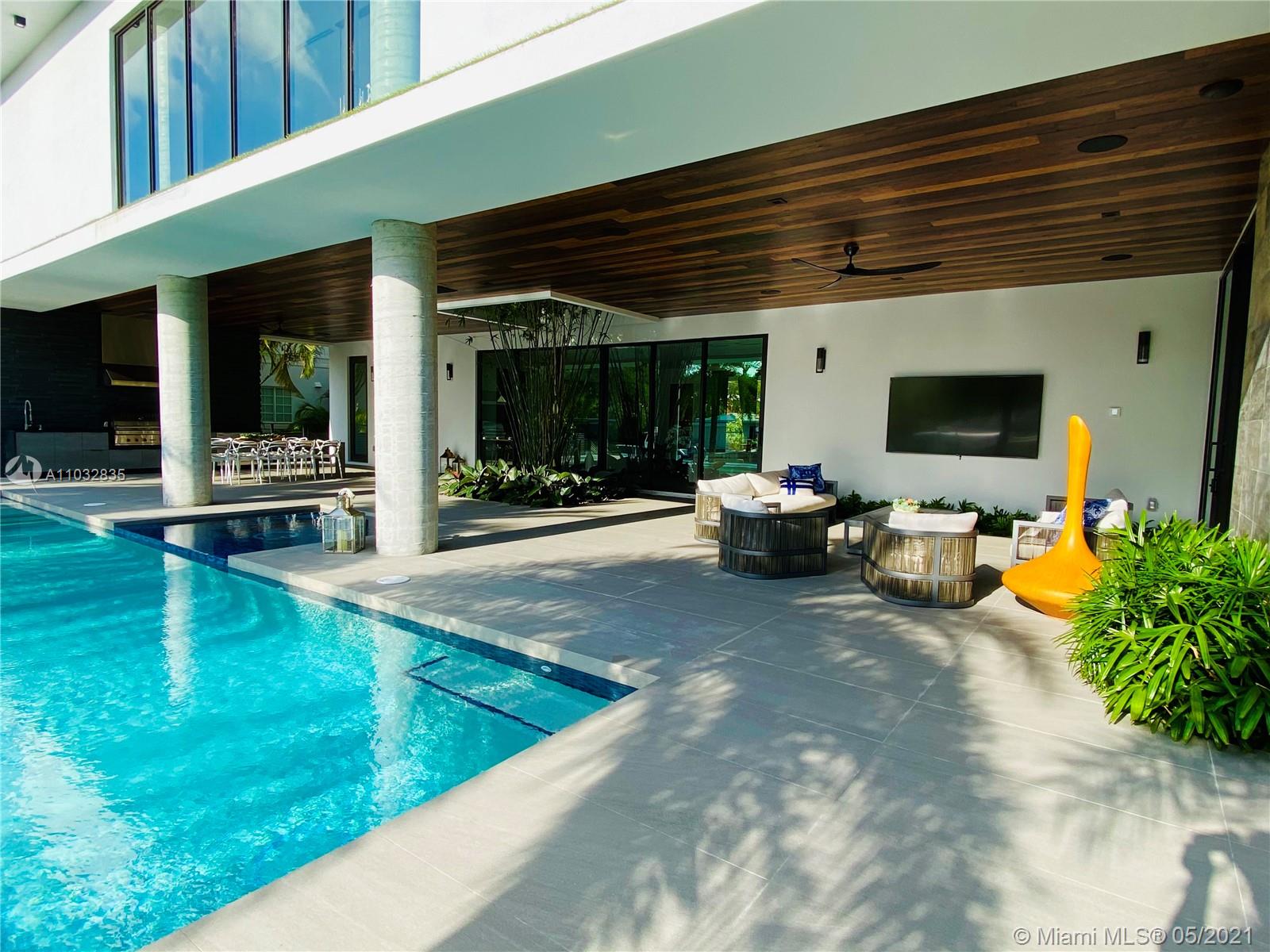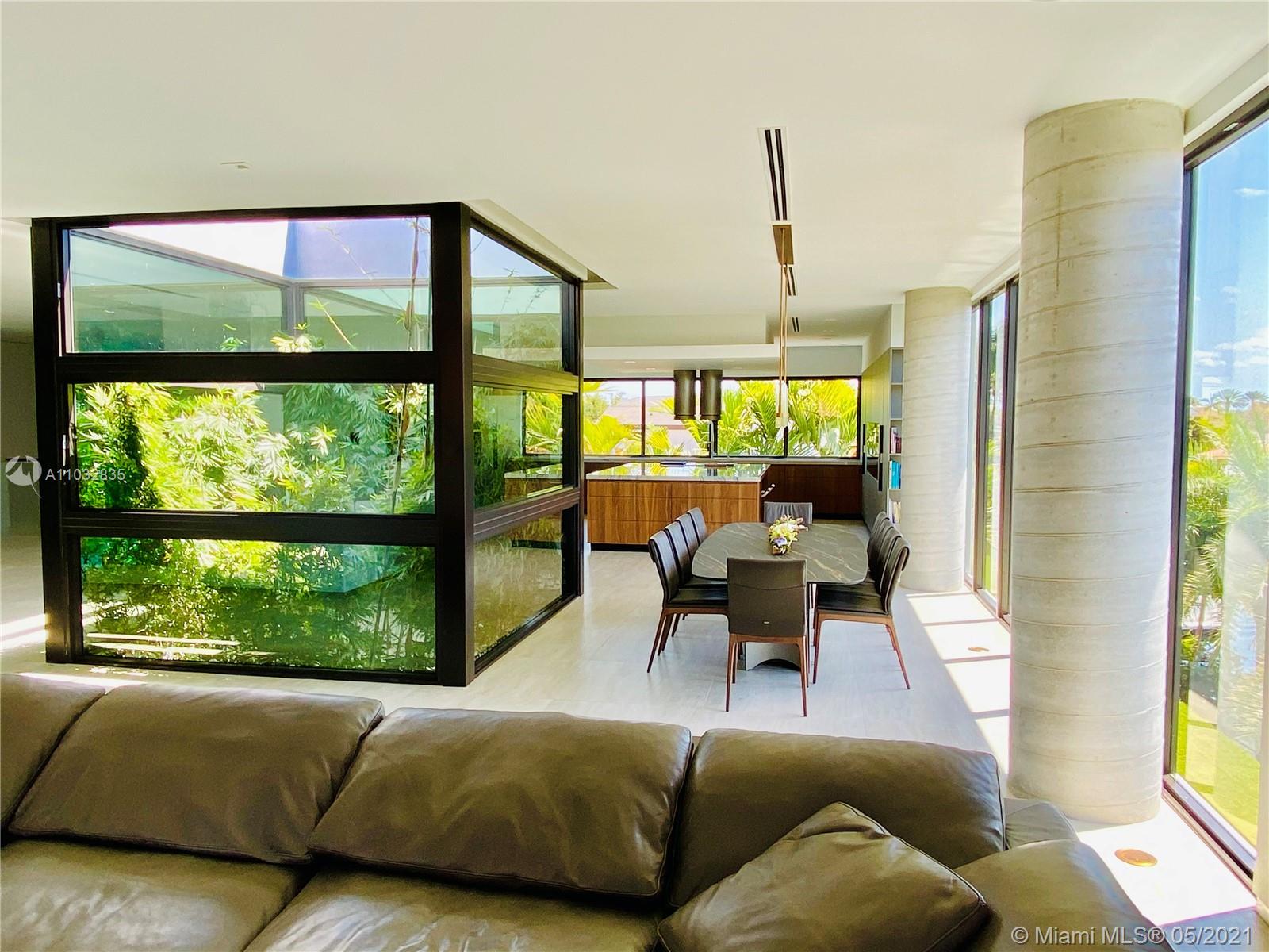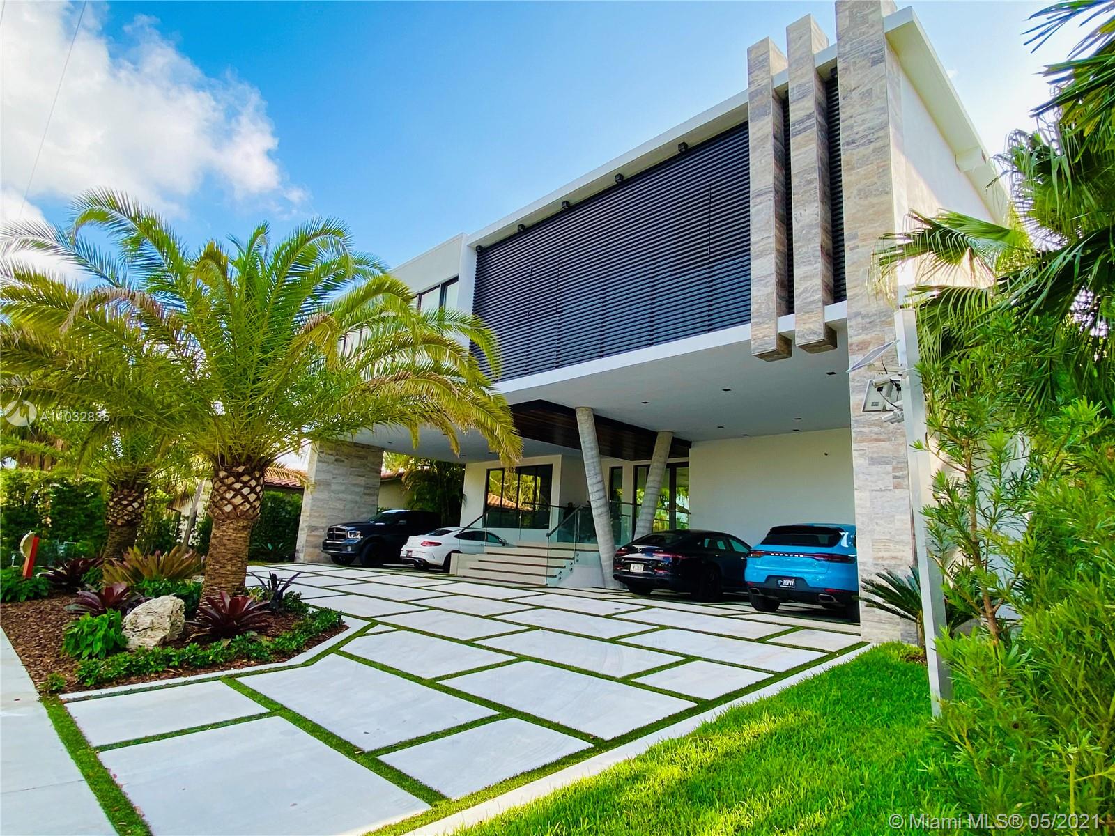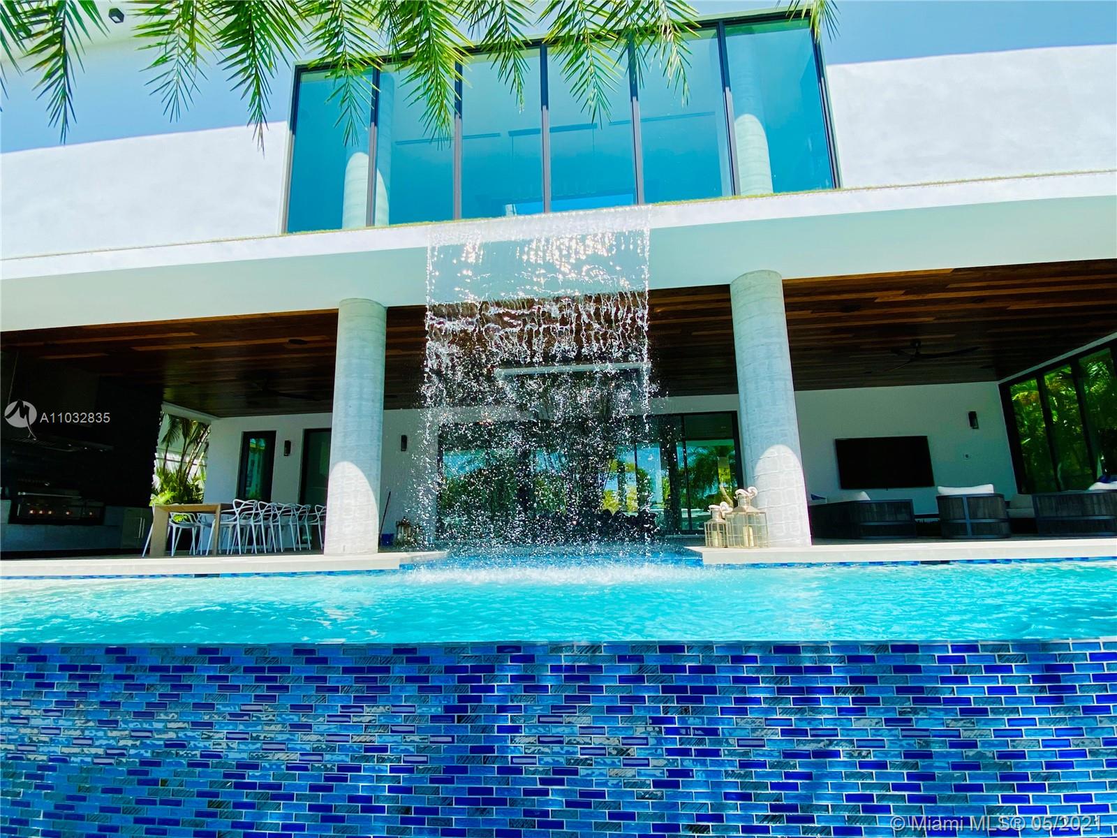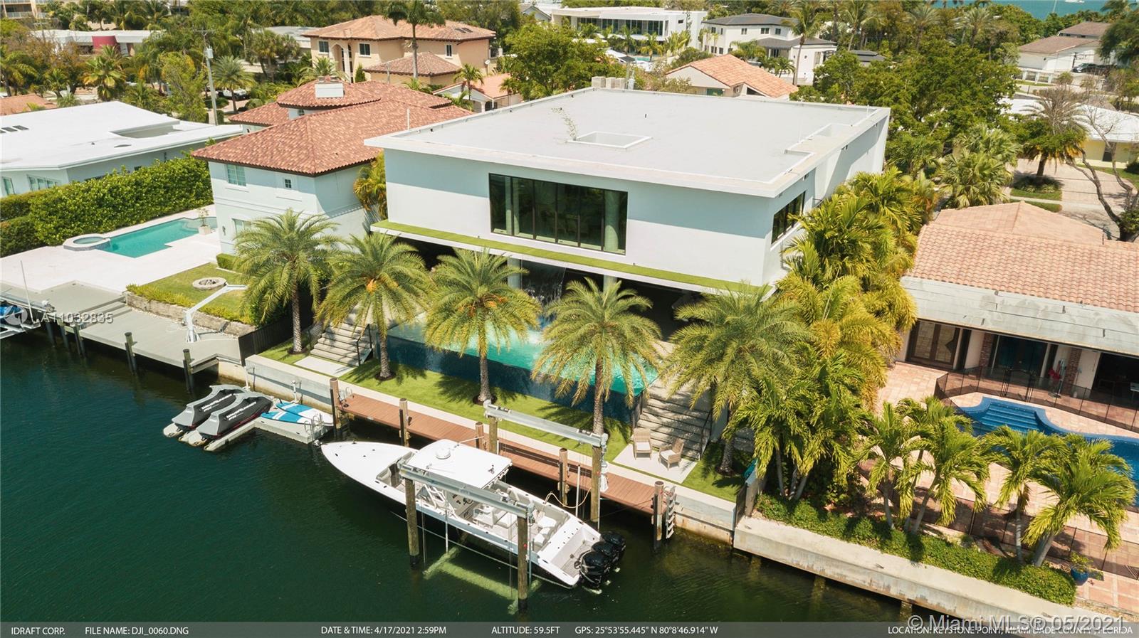 *UNIQUE*Keystone Island Contemporary Masterpiece of Architecture and Design is perfectly situated in a gated community , 24 hrs security | 5 min to high-end restaurants and Bal Harbour Shops | 78 ft waterfront and deep water dock-age |30k pounds boat lift just 3 min to bay |6bed/5bath | 8692 total sf | pool,spa,waterfall and fountain | 4 car garage | 24' high ceilings | 1st floor, 2nd floor and roof solid slab concrete | natural gas | Impact and solar advantages protection windows and doors | natural walnuts Italian doors | Italian Kitchen w/ top Wolf and Sub-Zero appliances | Glass interior patio | 1600 sf outdoor living space with summer kitchen.