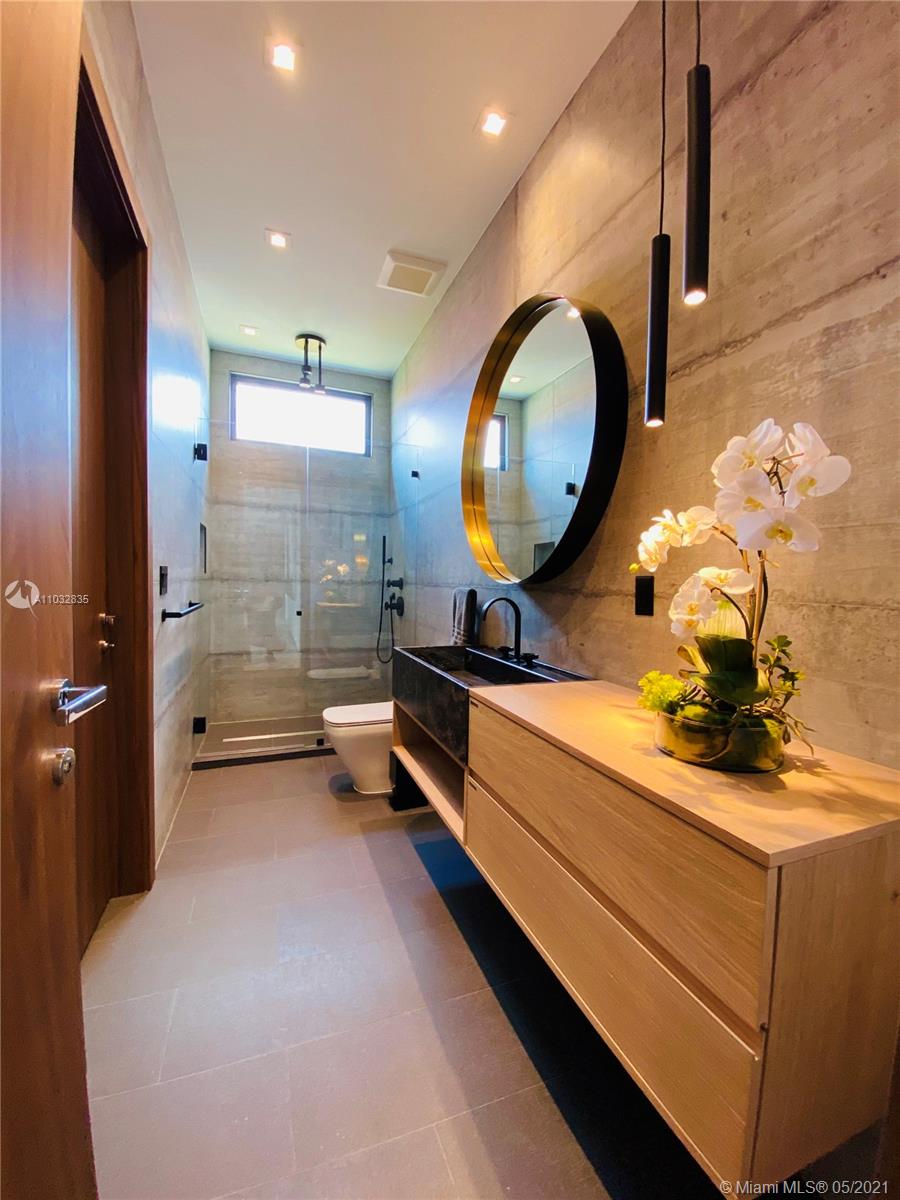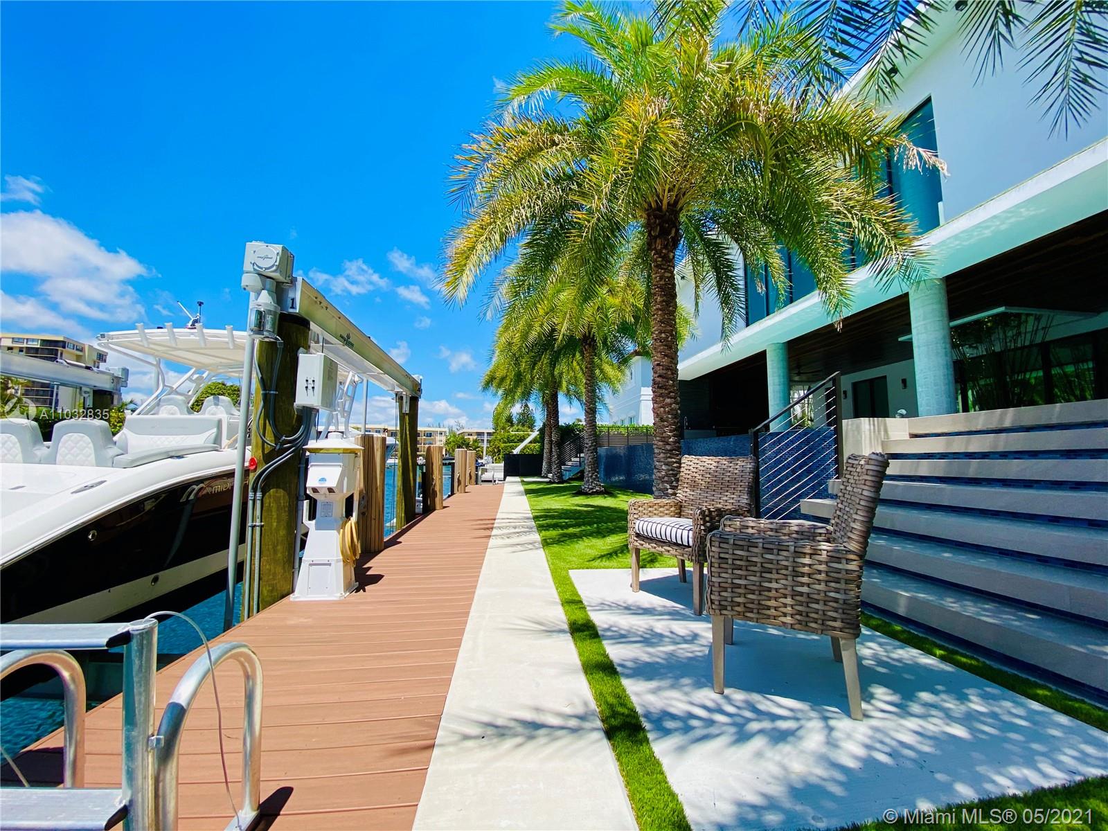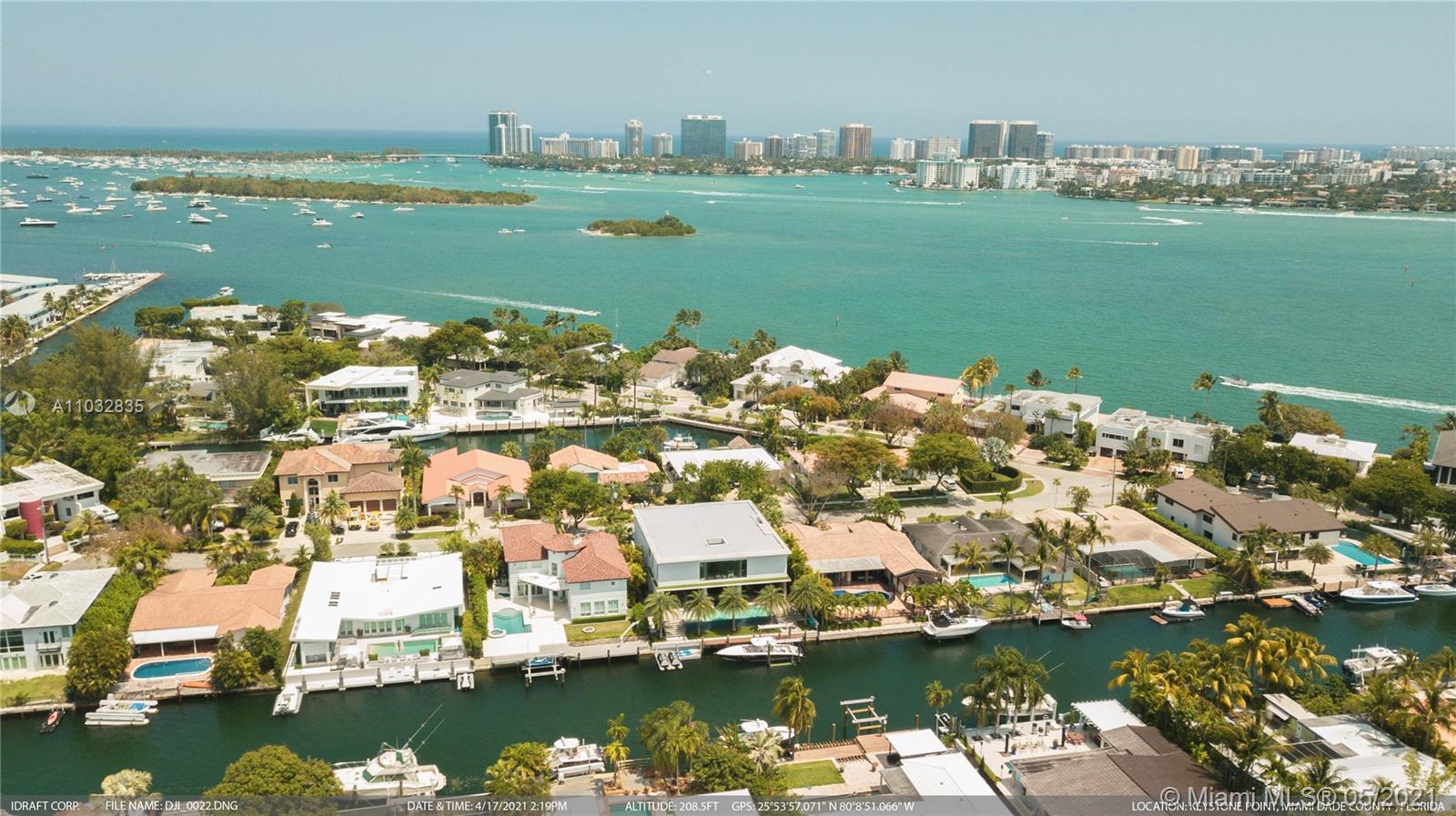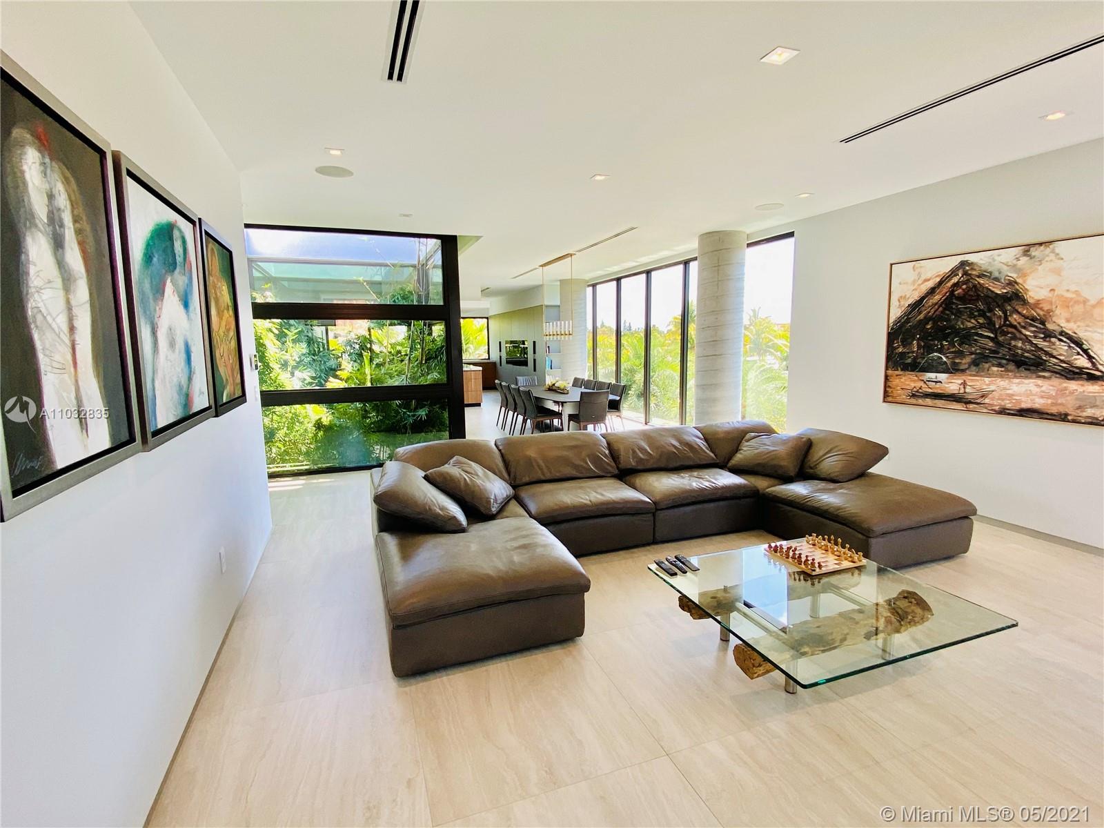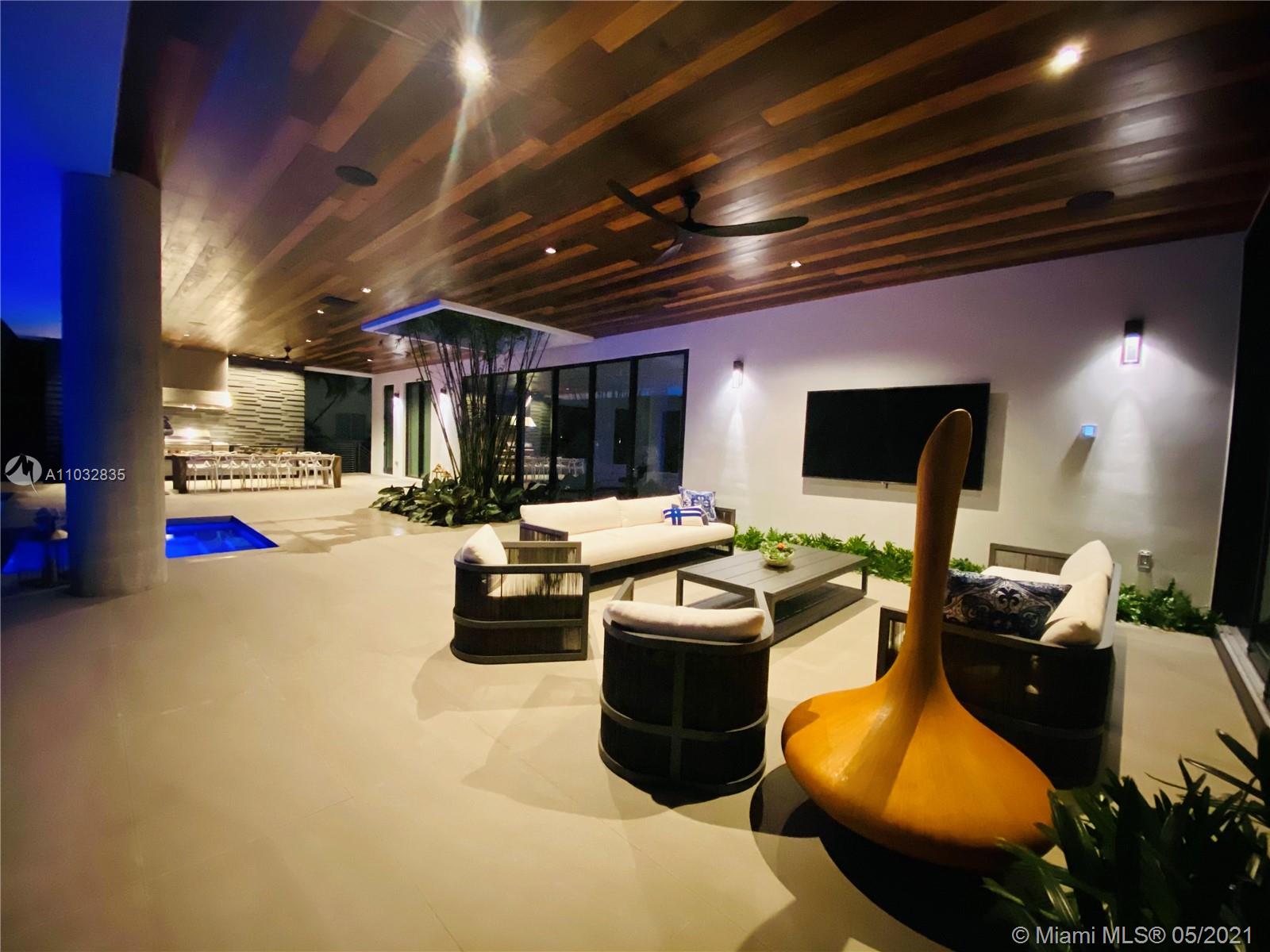 *UNIQUE*Keystone Island Contemporary Masterpiece of Architecture and Design is perfectly situated in a gated community , 24 hrs security | 5 min to high-end restaurants and Bal Harbour Shops | 78 ft waterfront and deep water dock-age |30k pounds boat lift just 3 min to bay |6bed/5bath | 8692 total sf | pool,spa,waterfall and fountain | 4 car garage | 24' high ceilings | 1st floor, 2nd floor and roof solid slab concrete | natural gas | Impact and solar advantages protection windows and doors | natural walnuts Italian doors | Italian Kitchen w/ top Wolf and Sub-Zero appliances | Glass interior patio | 1600 sf outdoor living space with summer kitchen.