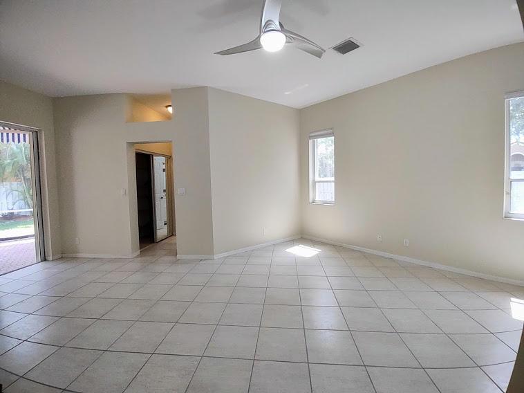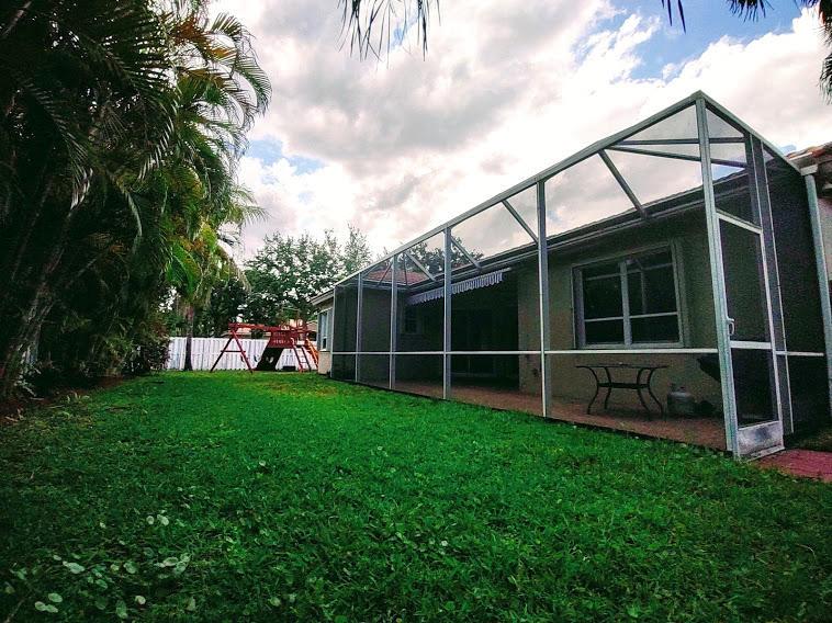 SINGLE STORY, LARGE CORNER PRIVATE LOT, & MOVE-IN READY Bridgeport Model in the Exclusive, Gated, Resort Style Community of PEMBROKE FALLS. This home is the LARGEST 3-bedrooms/ 2.5 baths model available with a BONUS ROOM! Home features plenty of Natural Light, New Kitchen (2019), Updated Baths (2020 & 2021), New Laminate Floors (2020), New 5-Ton A/C (2020), New Fixtures (2020) NO CARPET, Extra Large Master Bedroom, Custom Closets in all Bedrooms, Garage Storage, Large Screened-In Paved Patio, Sun Setter w New Fabric, Gas Hookup for BBQ, Accordian Shutters, Large Playground in Backyard, and so much more!!! A+ Schools. Enjoy the beautiful lakeview from the front of your home and a private tropical oasis in your backyard, featuring a large wooden playground for the kids! ROOM FOR A POOL!