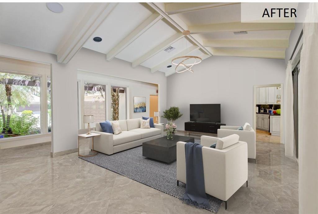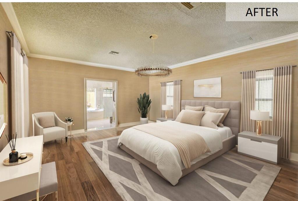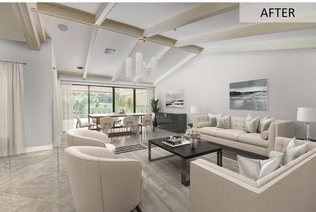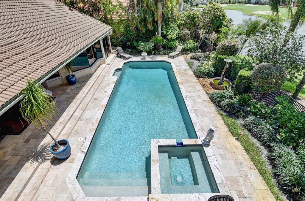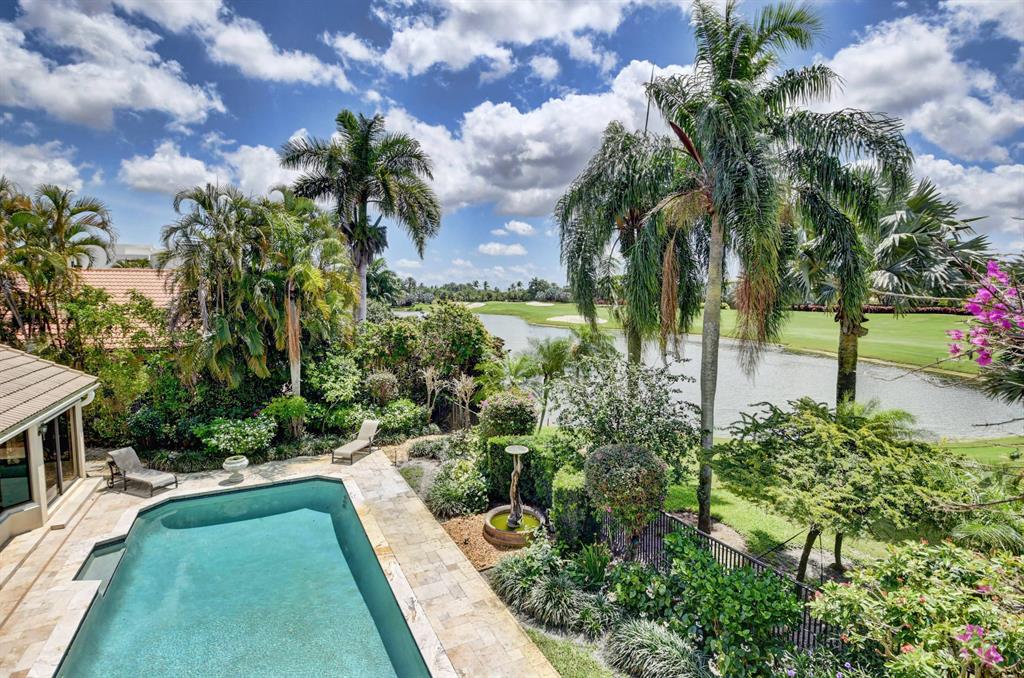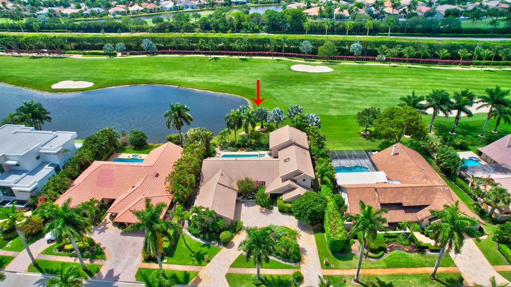 Lovely 3-bedroom + den/office home with panoramic lake & golf course views in St. Andrews Country Club. The home features 2 master suites, a full-house generator, and elevator. There are 2 bedrooms downstairs (including one master) plus a den/office. NO STEPS on the 1st floor. A second master suite is upstairs, with French doors leading out to a covered balcony. Both master suites are very spacious with separate sitting areas and custom walk-in closets. All bedrooms are en suite. Gourmet kitchen with double ovens and lots of storage. Desirable southern exposure out back, pool with spa, open & covered patio areas with marble pavers, and expansive lake & fairway views. Note: The ''After'' photos have been digitally modified to show the possibilities for the property.