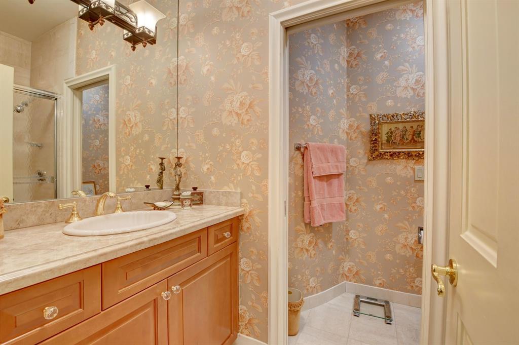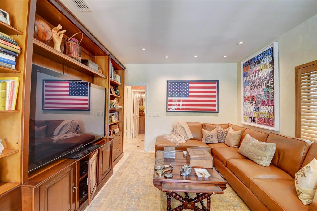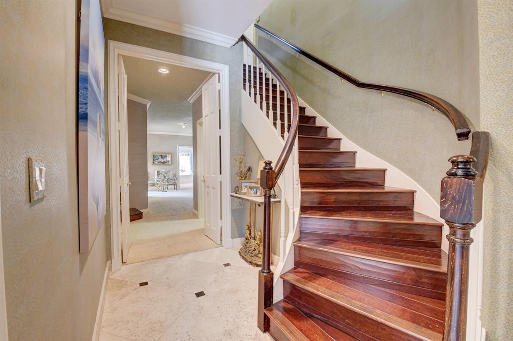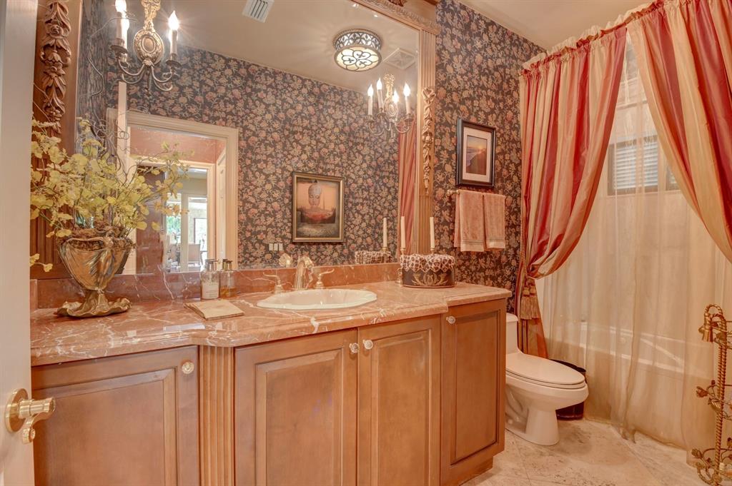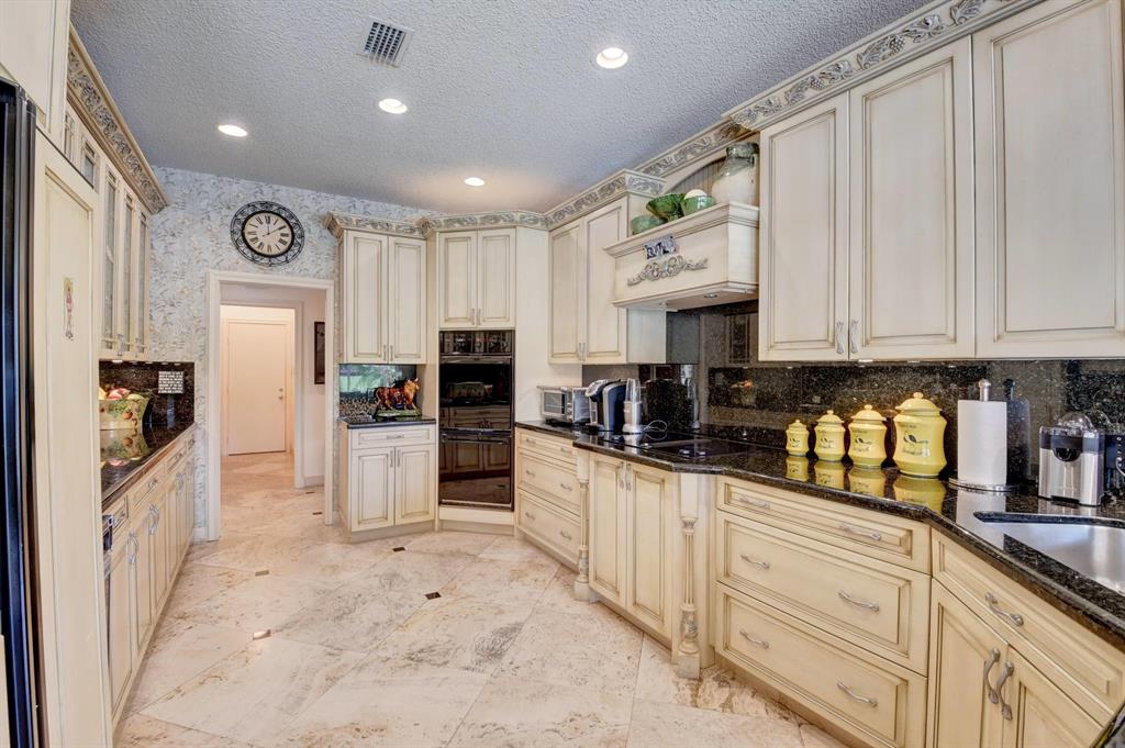 Lovely 3-bedroom + den/office home with panoramic lake & golf course views in St. Andrews Country Club. The home features 2 master suites, a full-house generator, and elevator. There are 2 bedrooms downstairs (including one master) plus a den/office. NO STEPS on the 1st floor. A second master suite is upstairs, with French doors leading out to a covered balcony. Both master suites are very spacious with separate sitting areas and custom walk-in closets. All bedrooms are en suite. Gourmet kitchen with double ovens and lots of storage. Desirable southern exposure out back, pool with spa, open & covered patio areas with marble pavers, and expansive lake & fairway views. Note: The ''After'' photos have been digitally modified to show the possibilities for the property.