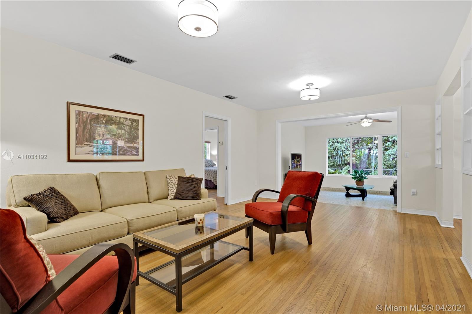 This 2 bedroom, two bath home offers a unique opportunity to live in a park like setting on a quiet street in the midst of Coral Gables. The thirty year old native tree hammock provides the perfect habitat for a variety of birds & butterflies. Large windows throughout the house make the transition from inside to outside seamless. The remodeled kitchen has maple cabinets, granite countertops & stainless steel appliances. The home has a spacious living area, with a separate dining room & a sunroom with large windows which take advantage of the calm & regenerating landscape. Original oak wood floors run throughout the house. The one car garage has a large loft area that will accommodate your extra storage needs. Recent improvements include impact windows, a new roof, several new appliances.