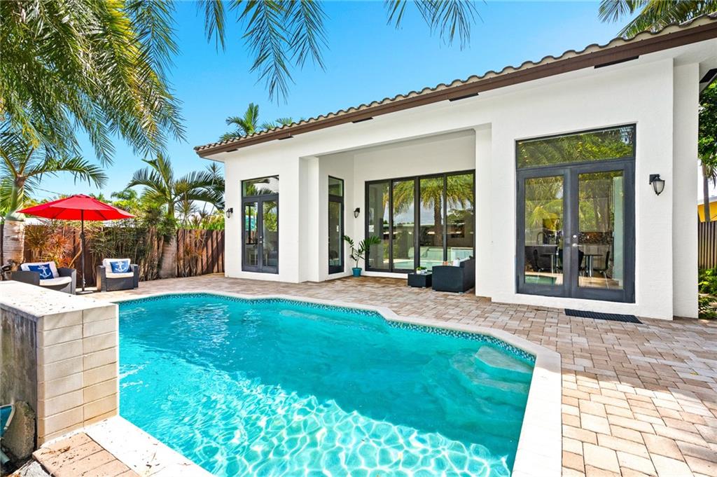 Imagine living in this 7-year old magnificent one story single family residence with high end finishes beautifully appointed on one of the nicest streets in Poinsettia Heights. Bright and open floor plan with soaring 10 to 14 foot ceilings, oversized impact doors and impact windows, nicely appointed gourmet kitchen with quartz countertops, and spacious and luxurious custom bathrooms. Huge master bedroom, just off the swimming pool, patio area and manicured gardens. Salt water heated pool with lush landscaping, plenty of outdoor area for entertaining friends and family, open rear covered porch to relax and unwind. Two-car garage and additional paver guest parking. Close to downtown, the beach, US 1, and Wilton Manors. Easy to show. Use Showing Time.