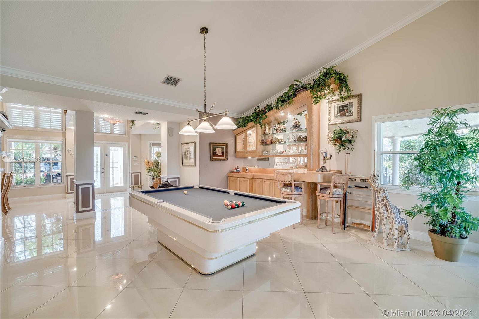 One of the largest homes and lots in Forest Ridge! This 5/3 estate boasts over 2,900 sqft of inviting spaces w/ soaring ceilings & tons of natural light. As you walk into the home, your eyes are drawn to the sparkling lake & heated saltwater pool. This home features a spacious master suite w/tres ceilings, plantation shutters, walk in closets & fully renovated spa like bathroom w/free standing tub, oversized shower, & private water closet. Endless entertaining possibilities w/an open kitchen, ample cabinet & counter space overlooking the large family room. All bedrooms have a stunning porcelain wood tile. Both secondary bathrooms have been tastefully remodeled. Roof is 2017 and AC is 2019! 5th bedroom is currently being used as an office. Home has full hurricane protection! A rated schools