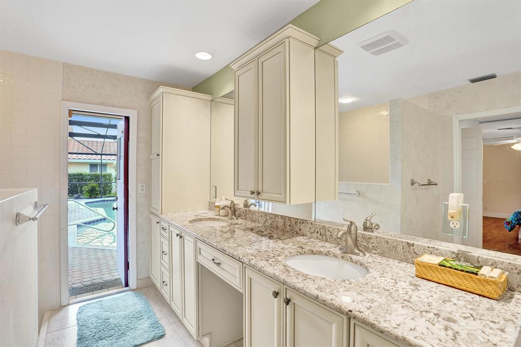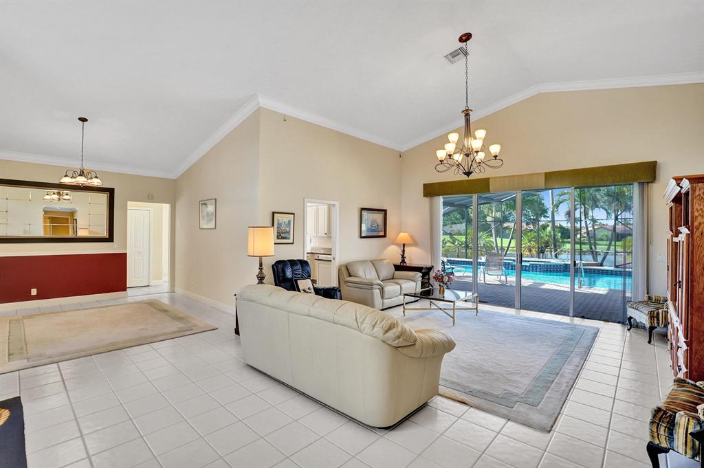 You will love the view when you walk into this beautiful home..... a 1-story pool home with both water and golf course views from many rooms. The high ceilings in the living and dining rooms make the house feel very spacious. The house is in great condition and has been well maintained. The kitchen and bathrooms have granite counters; the kitchen is large and has a nice eat-in area facing the back. The pool is salt water and is heated; the deck area has an enclosure. There is also a small screened in area outside the pool. A full house generator was installed in 2018. Boca Greens has a golf course but there is no mandatory membership.