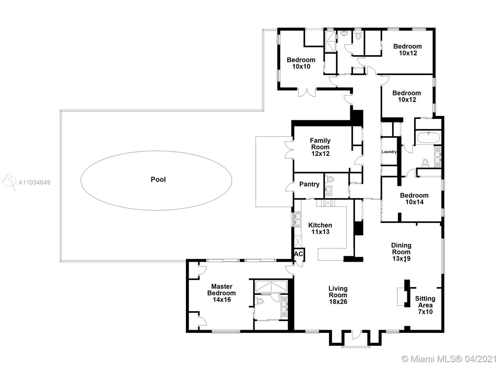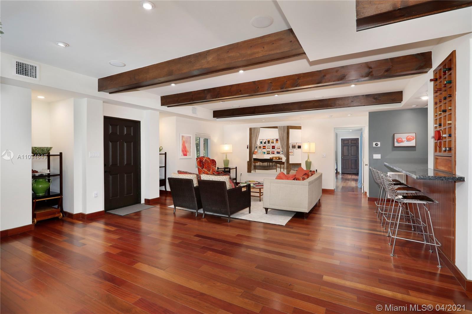 This spacious Miami Shores home is situated on a large .25-acre corner lot and offers 5 bedrooms, and 3 full and 1 half bathroom. The property features a Native Florida plants garden, numerous fruit trees, including mango, papaya, lychee, carambola, and loquat, and a sparkling tiled pool. The living area, with large art walls, is full of natural light and opens to the kitchen and dining rooms. The kitchen includes a walk-in pantry, gas range, granite countertops and space for 5 bar stools. The split floor plan has the primary bedroom, which opens to the pool through the sliding doors, on one side of the home, separate from the 4 bedrooms on the other side. This home is ideally located close to local businesses, has impact windows and is wired for your electric car charger.