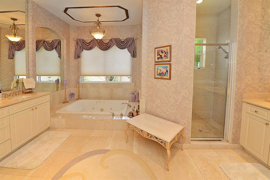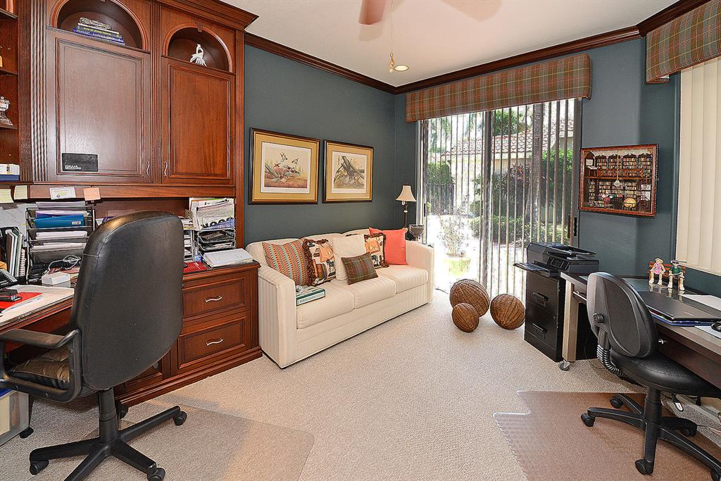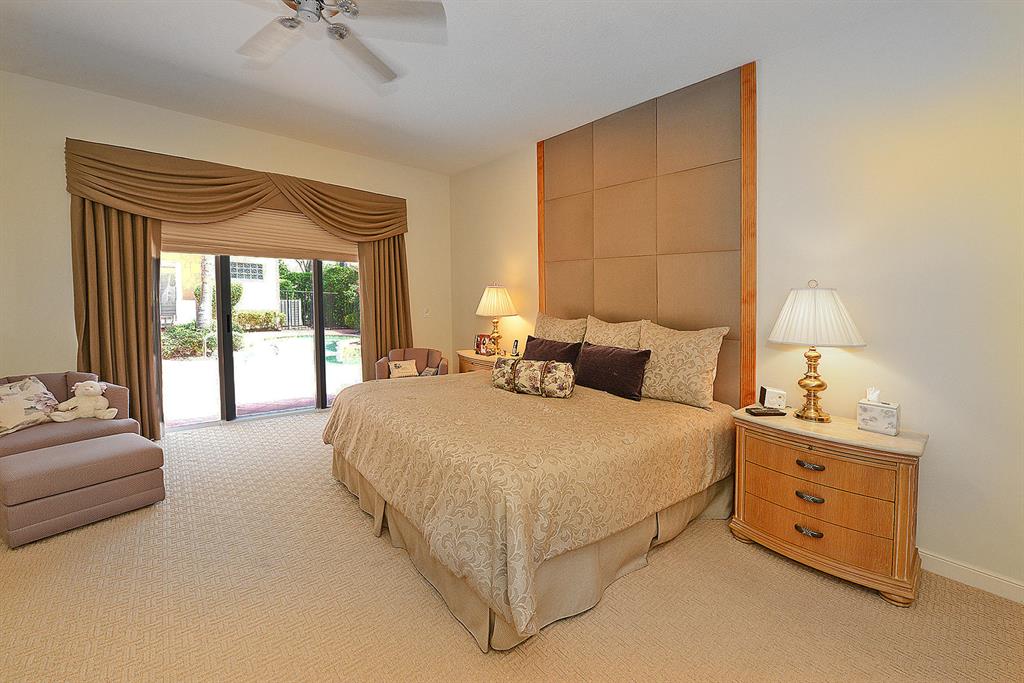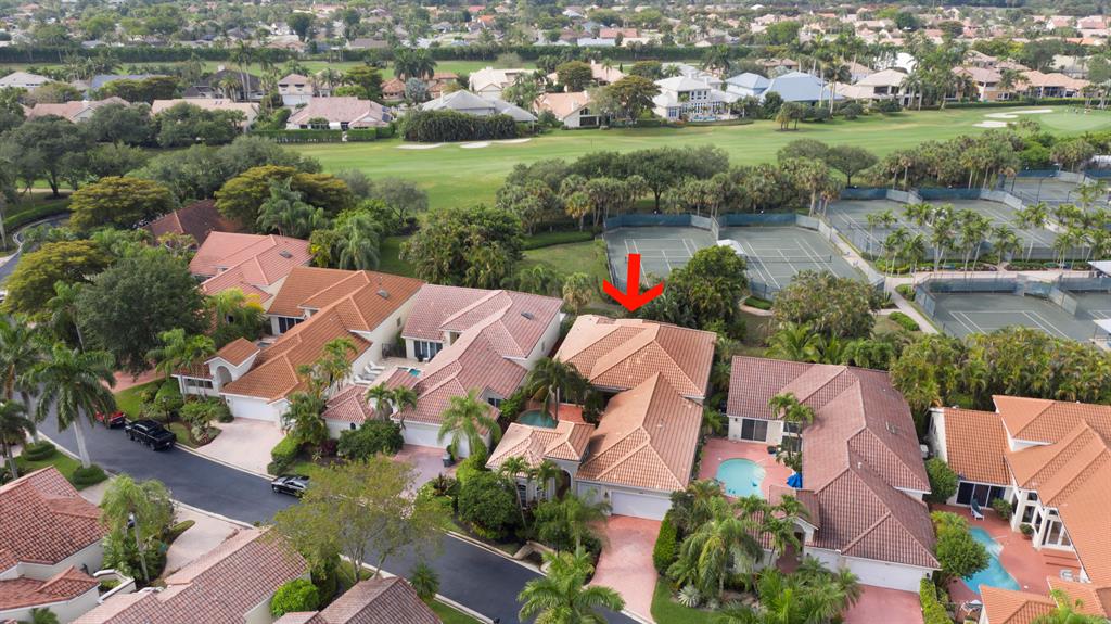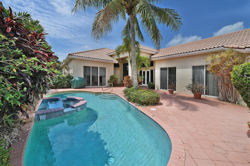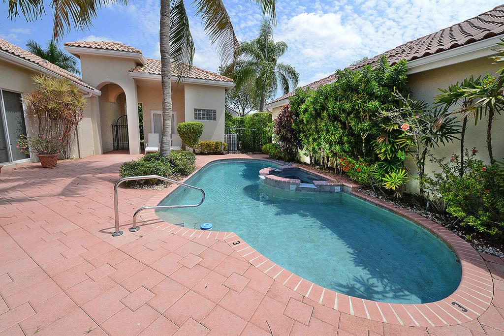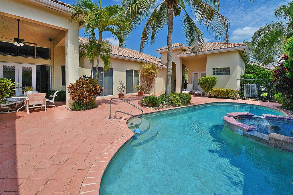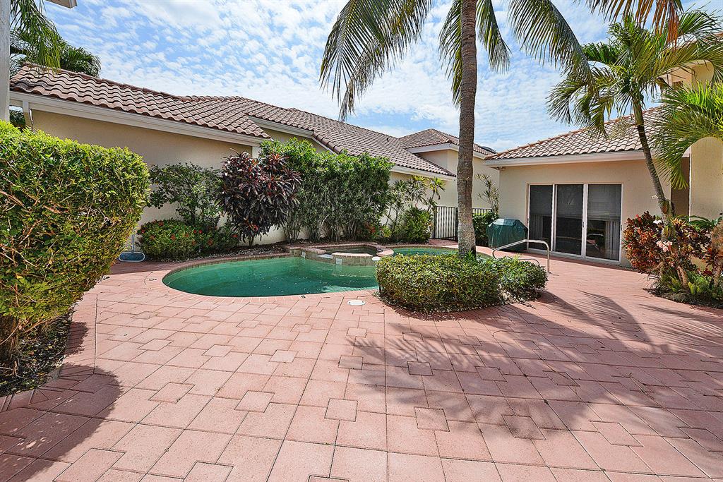 Beautiful 4BR / 4BA one story courtyard home located in Boca Grove, just a short walk to the clubhouse, pool and new fitness center. This well maintained residence features volume ceilings with crown molding and marble floors throughout the entire living area. The open floor plan is perfect for entertaining with a gourmet kitchen and updated appliances. The spacious master suite, guest bedroom and office with built-ins all overlook the pool and patio. Once you exit to the courtyard, you will find a nicely appointed guest house with full bath. Storm panels, shutters and a generator complete the package. This home is located in close proximity to fine dining, great shopping and houses of worship. Boca Grove is a mandatory membership country club community.