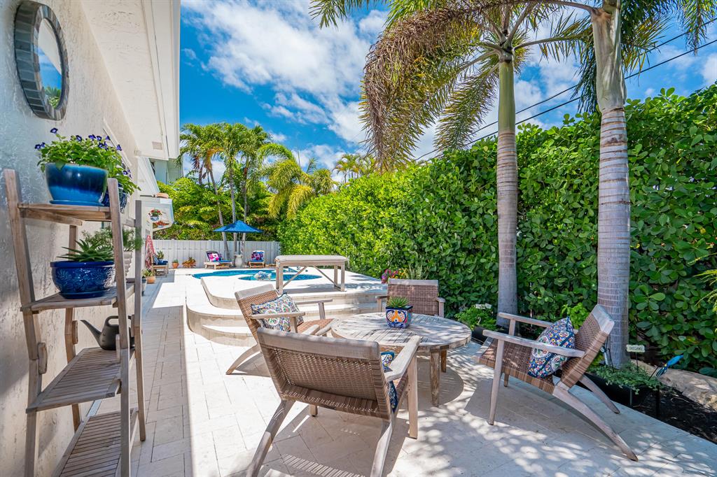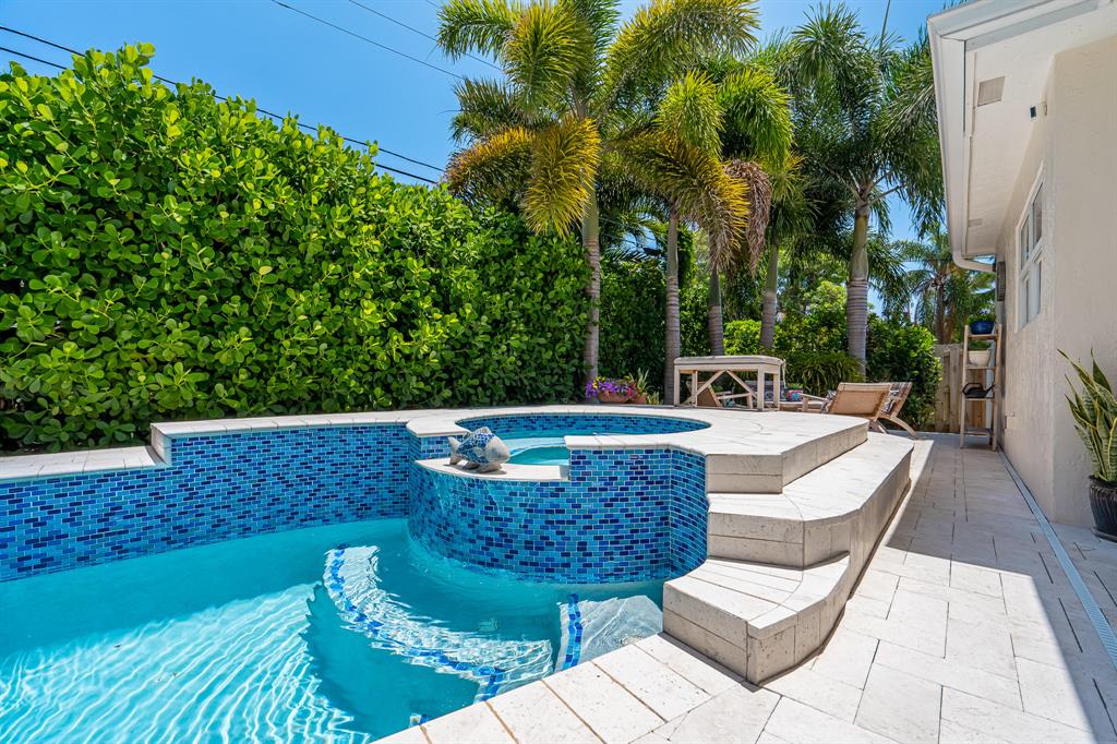 Don't miss this rare gem! Situated among multi-million dollar homes in the Boca Raton Riviera enclave community, this is Barrier island living at its best!Immaculately maintained, this open concept home delights with designer finishes including custom wood doors, crown molding and built in bookshelves. Renovated master bath and his and her closets.Other upgrades include; Hurricane impact glass windows, dual zone A/C, 35 KW full home generator, newer water heater and roof (2015). Bright updated kitchen has Jenn-Air appliances, counter top stove, and an elegant custom built-in buffet.Enjoy evenings at home in your private tropical courtyard. The backyard boasts an expansive travertine patio deck. With a newly renovated glass tile, heated, free form, salt water pool with jacuzzi.