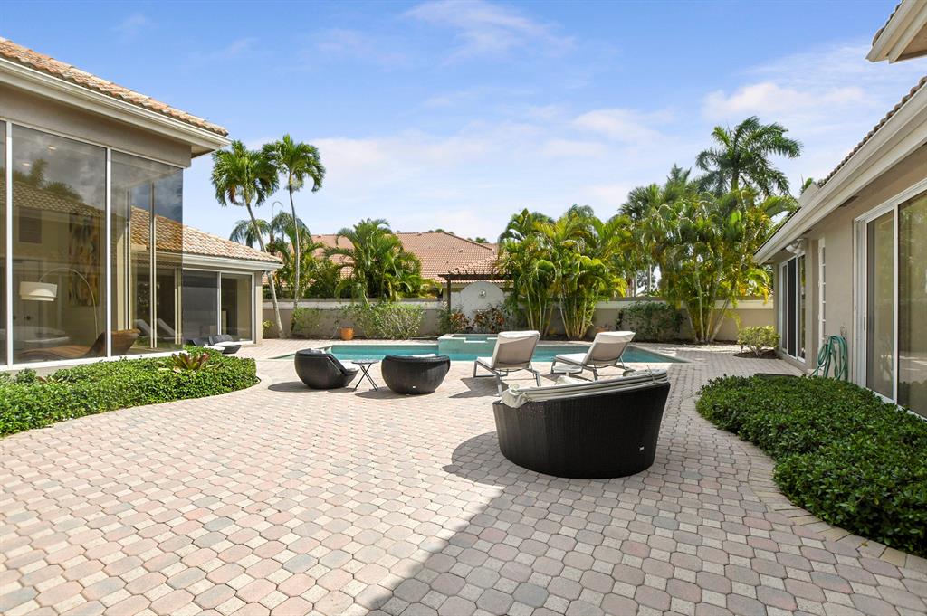 This 1 story fully renovated contemporary home is located in Grand Oaks. This estate sits on an oversized lot in the most sought after subdivision in the award winning country club at Broken Sound. Highlights of the home include volume ceilings, a bright open floor plan, neutral colors throughout, quartz countertops, stainless steel appliances and porcelain tile floors. The main house has 4 bedrooms, an office plus 4 full baths. There is a guest house with 2 bedrooms, 1 full bath and a kitchenette. The large courtyard with oversized pool & spa, makes this home feel like your own private resort. The tremendously sized backyard with grass is perfect for children and pets. Best of all there is room to add a tennis court! Do not miss out on this fabulous estate home!