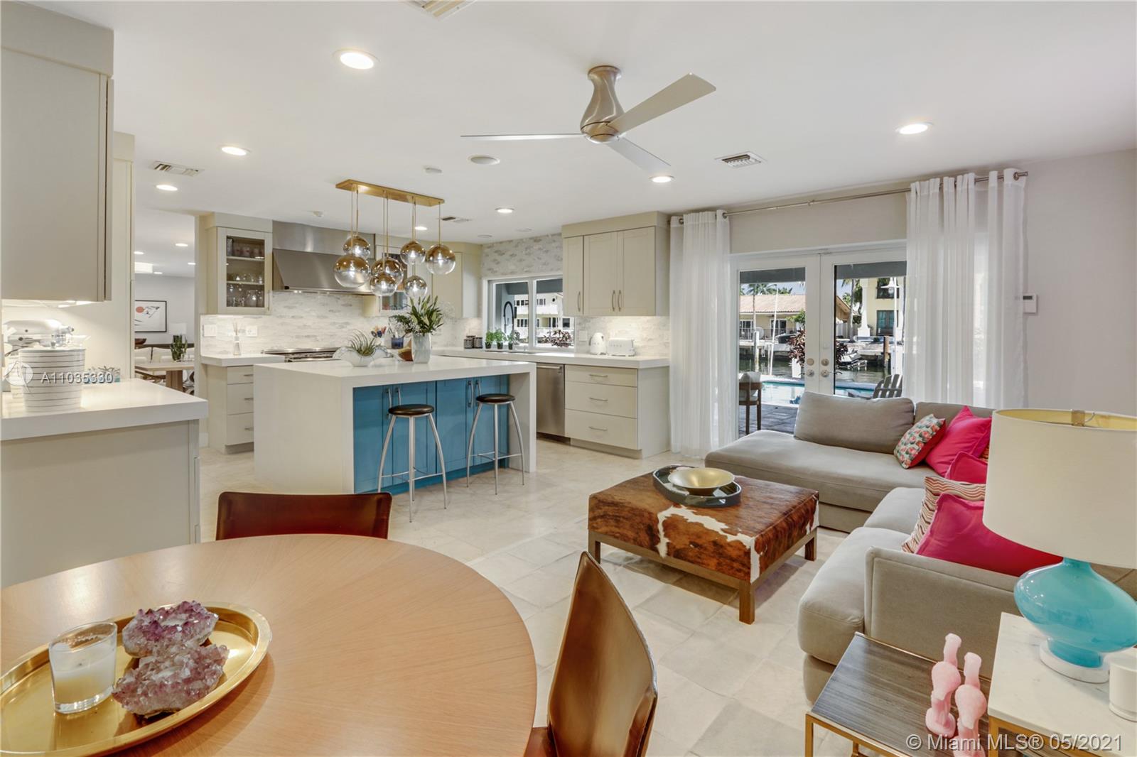 Beautiful waterfront pool home in guard-gated Eastern Shores. This fully renovated open floor plan is perfect for entertaining! Gourmet eat-in kitchen with top of the line appliances. Large living room / dining room open out to a huge covered patio, swimming pool, jacuzzi, outdoor kitchen and 85' along the canal. Main suite bathroom also opens out to patio. Porcelain tile and wood floors throughout. Close to Sunny Isles Beach, Aventura, Bal Harbor, Oleta Park, shopping and dining. Full house generator, impact windows, Rainbird sprinkler system, outdoor lighting. No fixed bridges to ocean access at Haulover Inlet! Adjusted square footage is 3,191.