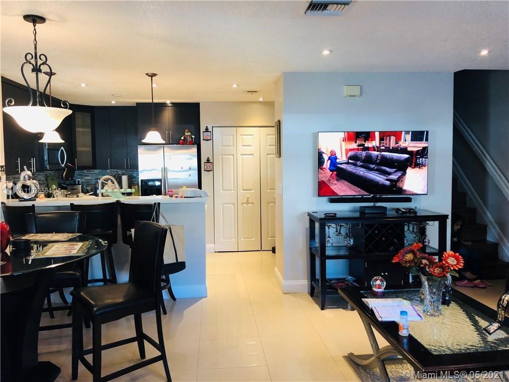 Two story townhome with 2 bedroom, 2.5 bathroom townhouse in the community of Bahia. The first floor has new tile and the kitchen has been remodeled with stainless steel appliances. Upstairs has laminate flooring and both bedrooms have walk-in closets and their own private bathroom. Impact windows. The community has a pool.