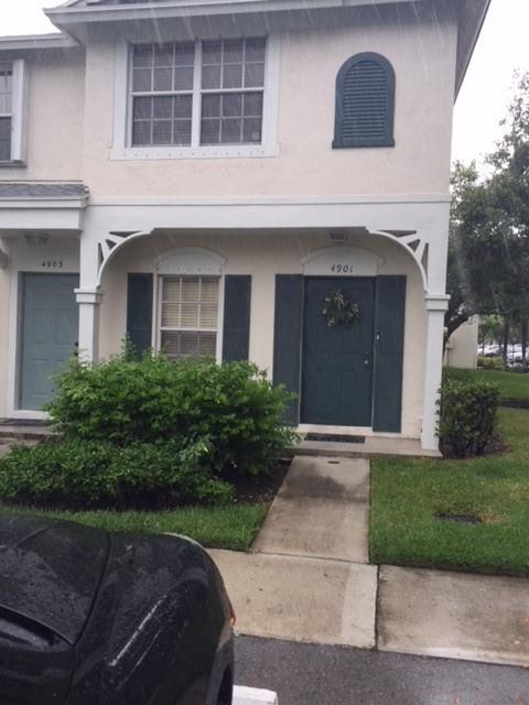 Gorgeous 2 story Lakefront corner townhouse. Gated community. The maintenance fee $225 covers roof, exterior, insurance, lawn, and amenities. No rental restrictions. Spacious living/dining. Screened patio w/storage. Hurricane shutters. Tiled downstairs w/1/2 bath. Both bedrooms upstairs -- each w/own bath. Painted w/new carpet.SS appliances. Enjoy peaceful views & walks by the lake. Pool, clubhouse & play area. 2 spaces in front. Lots of guest parking. Better hurry!