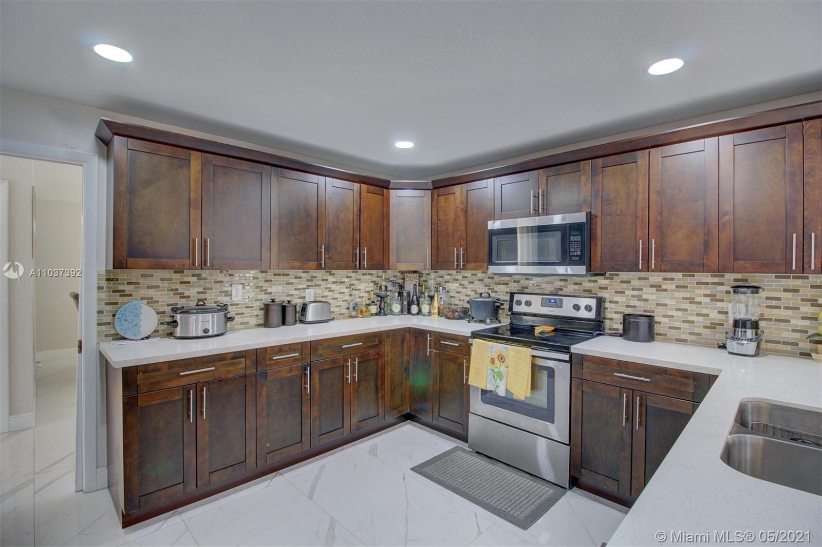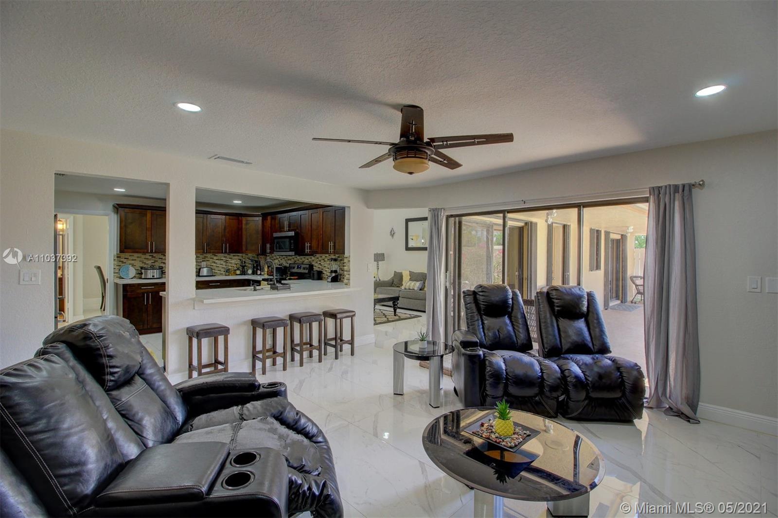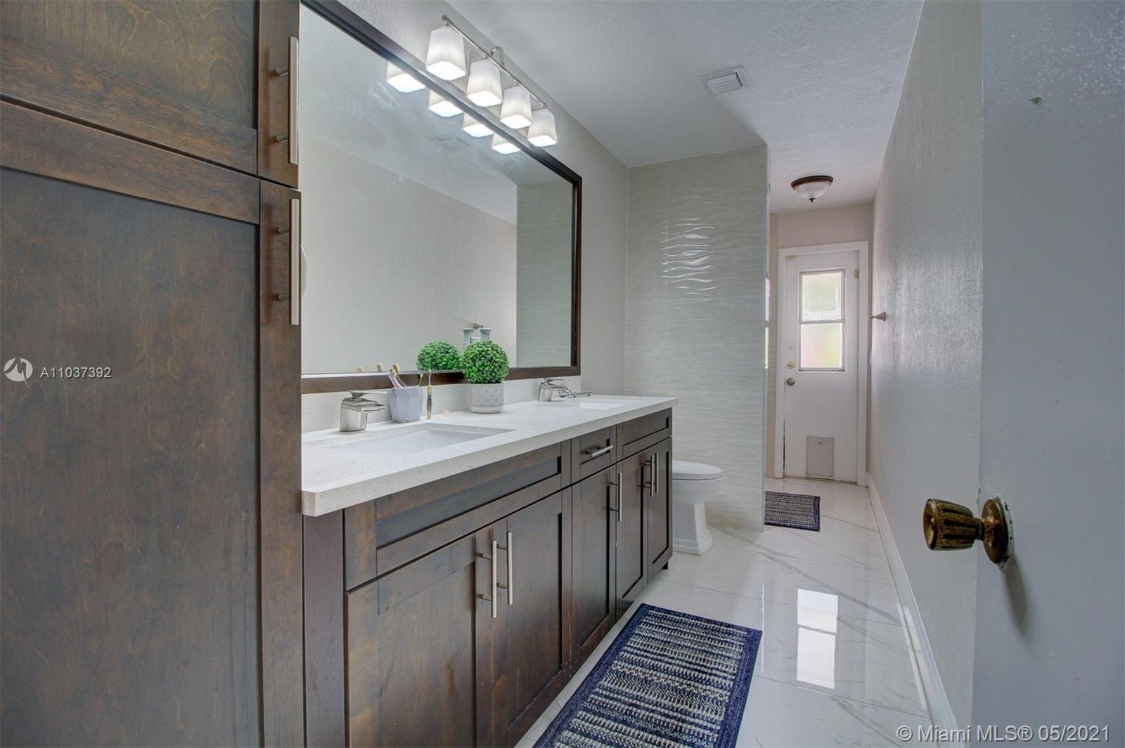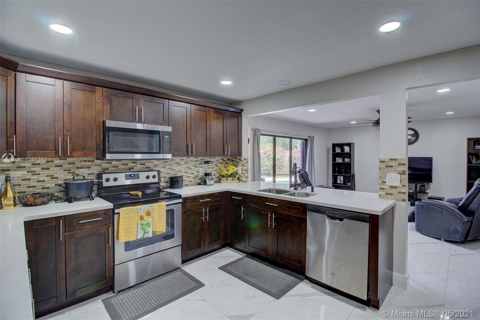 Fully remodeled bright and airy 4 bedroom 2.5 bath one story pool home located in SE Plantation. New roof completed in 2019. Accordian shutters, new hurricane proof front door, new AC & Washer/Dryer. Stunning 24 x 48 calcutta porcelain tile flooring throughout. kitchen boasts white quartz countertops with beautiful contrasting wood cabinetry, glass tile backsplash and SS appliances. NO popcorn finish on these vaulted ceilings with recessed lighting and tons of natural lighting as well. Double vanity bathroom with frameless sliding enclosures. Built in closets in all bedrooms. Located in a quiet culdesac with an oversized pie shape lot. Large patio/deck perfect for entertaining.