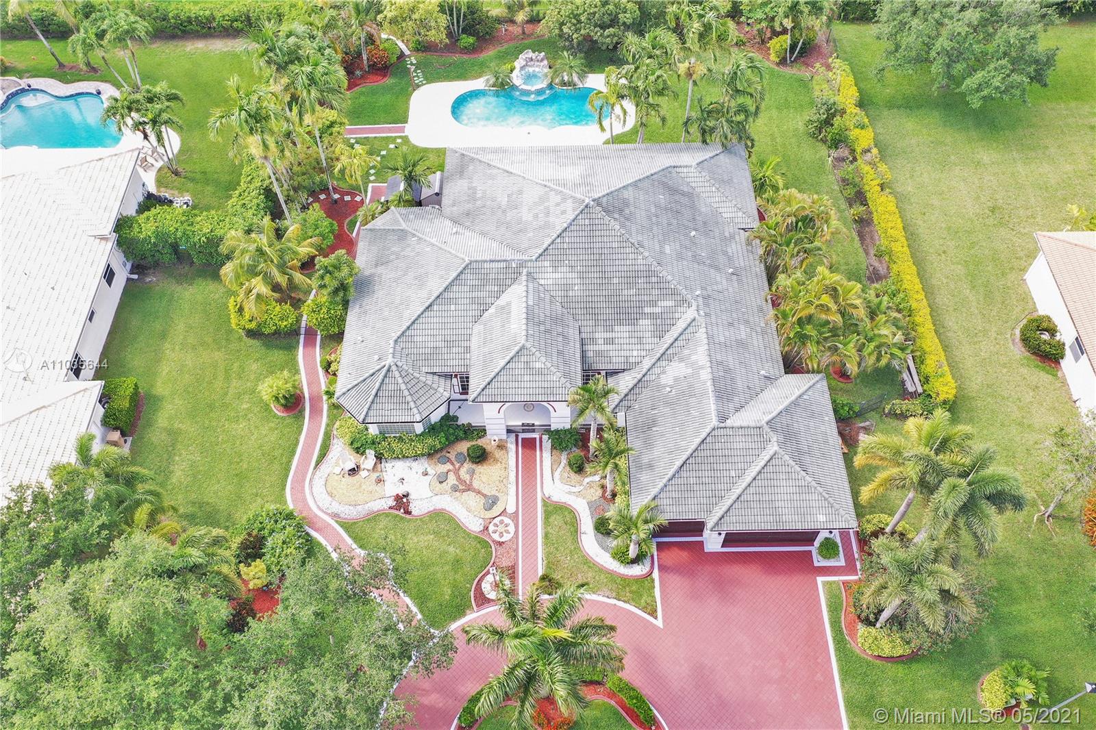 EXQUISITE ARCHITECTURAL DETAILS ABOUND IN THIS STUNNING 5/5 Plus Den. Imported Crown Molding and interior decoration, very New 3 ACs, New WIFI enabled Garage door, Outside Cameras, Pool with SPA, water fall, bubblers & water jets. Newly Painted Grant foyer Entry, Granite Built-Ins Formal Dining Room, Extraordinary custom Wall to Wall Entertainment Center, Large Granite Wet Bar, Wine Rack, Beautiful Kitchen with Double Oven, Preparation Island, Walk-In Shelved Pantry. Custom Built-in Office Room with Granite. Master Suite Features Sitting Area, Tray Ceiling, Spa-Like Master Bath, Newly Painted inside & Outside. Master bedroom has wood accent walls. Outside Large Kitchen with Marine wood. Award Winning Landscape. Walk-way all around the house. Tropical Fruit Trees all around the house.