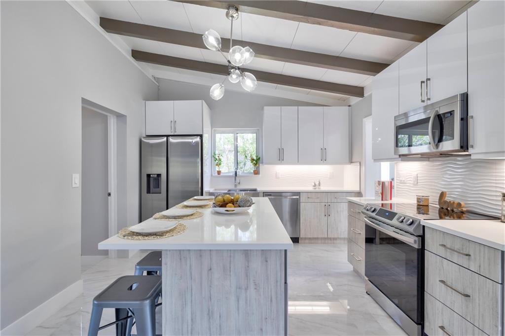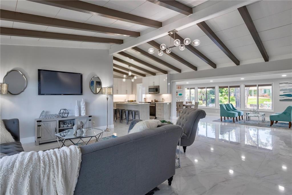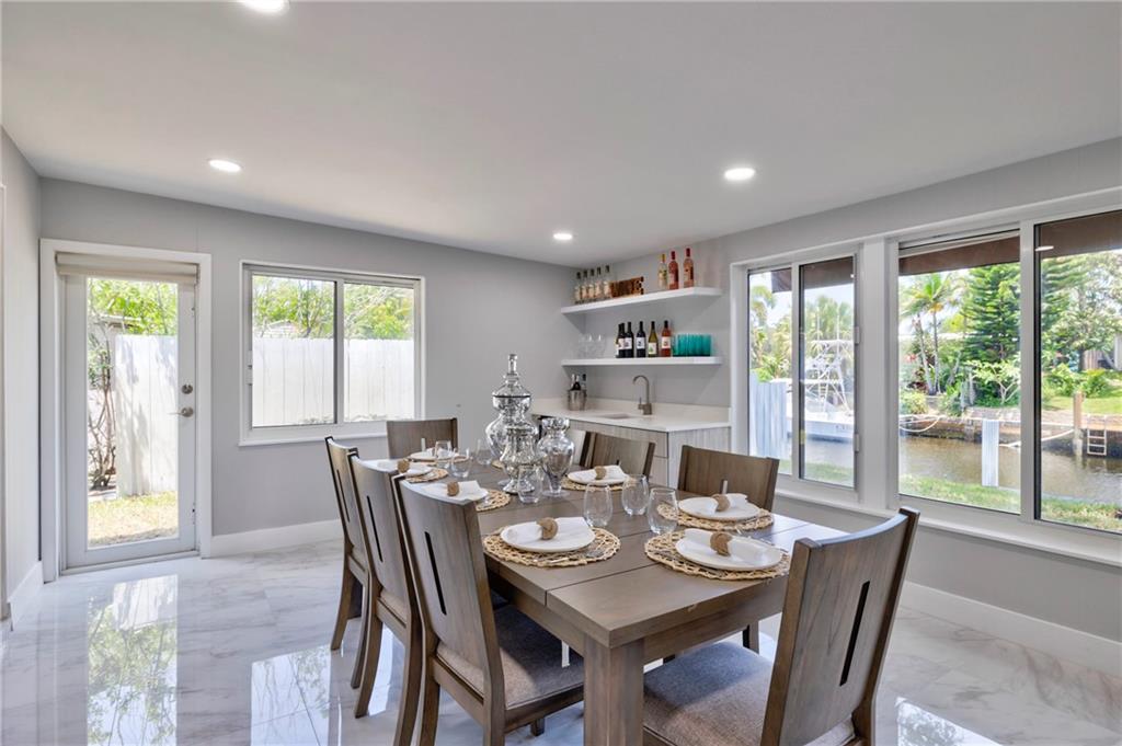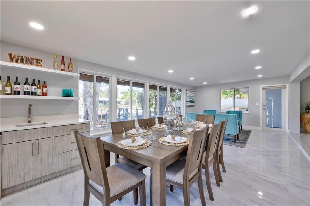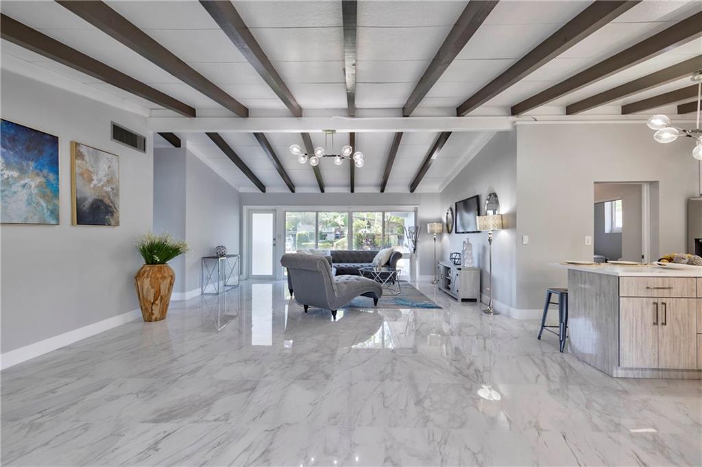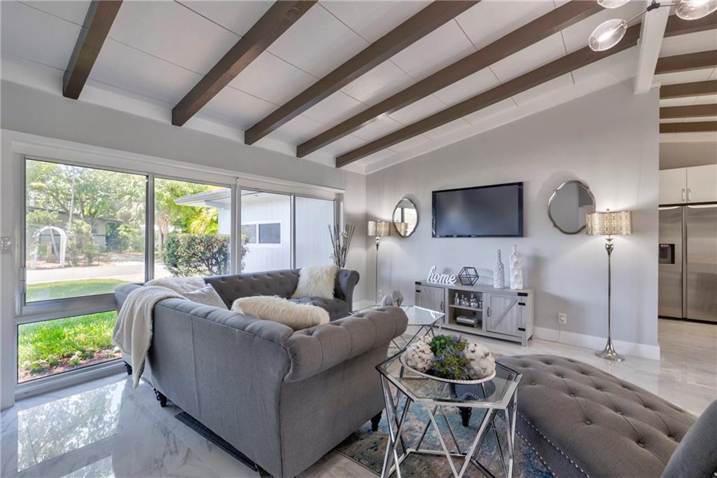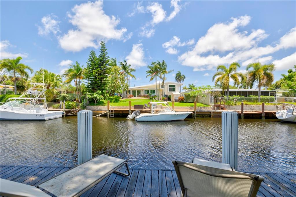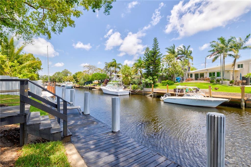 WOW! Ocean access- no fixed bridges, bring your BOAT! This home is so spacious! Spectacular from the the NEW roof, impact windows and doors down to the polished tile (marble looking) floor and everything between! The kitchen is a work of art! Handmade cabinets, quartz countertop, HIGH END appliances! Volume ceiling with beams oozes charm. Wet bar, dining and sitting area with a view to die for! New irrigation and sod. Mature trees. Brand new HUGE wood deck. Dock has power. If you think the pictures look good, wait till you live here!