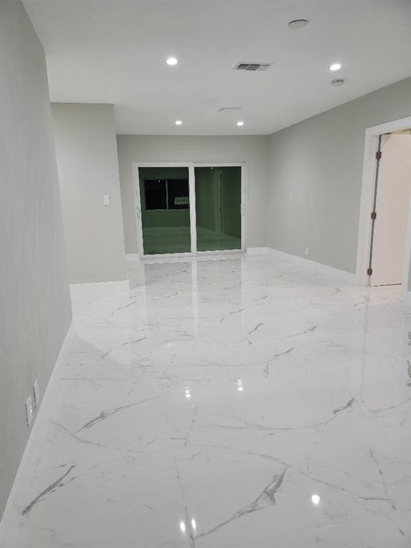 Completely renovated from the studs and all-permitted. Everything is brand new including: high-impact hurricane windows and doors, electrical, plumbing, high-efficiency 4 ton air-conditioner, sleek white Shaker kitchen cabinets with white quartz countertops and gorgeous glass backsplash open to oversized family room, high-end five-piece stainless-steel kitchen appliance suite including vent hood, vaulted-ceiling master bedroom suite with walk-in closet and luxurious master bath with double vanities and large glass-enclosed shower, guest bath with floor-to-ceiling white tumbled marble subway tile, 24x48 white polished porcelain floor tile in all rooms, recessed lighting throughout and so much more!