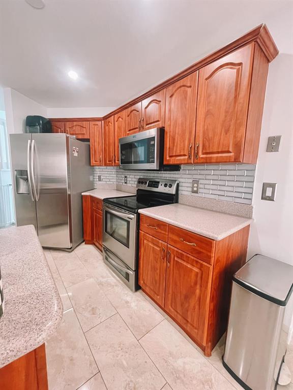 Total Remodeled Home consists of marble and waterproof luxury laminate flooring throughout, high cathedral ceilings, separate living and family room, eat in kitchen, SS appliances, Corian countertops, freshly painted-no popcorn on ceilings. Main bathroom jacuzzi tub separate shower . Every bathroom has new contemporary vanities w/all new tile, LG washer /dryer A/C 1 yr old, New Refrigerator and stove,screened in patio, oversized corner lot, pool and spa. Community is man-gated, tot lot, pool. Nothing to do in this home but bring your belongings and enjoy the sunsets by the pool.