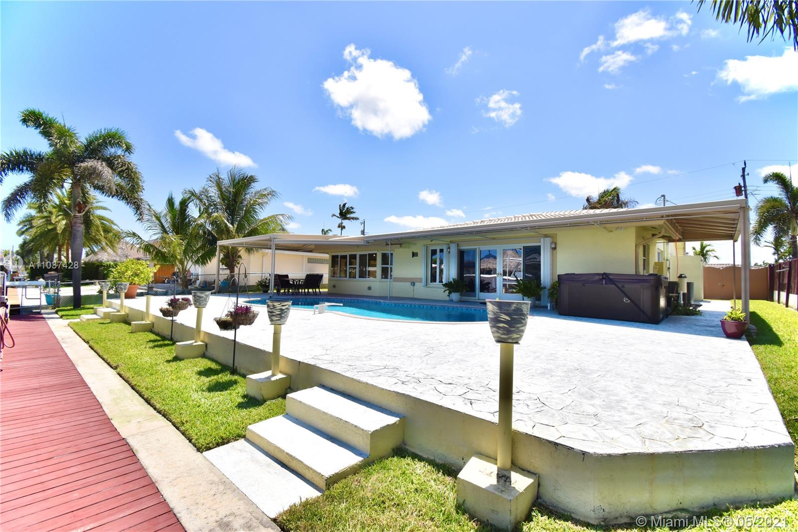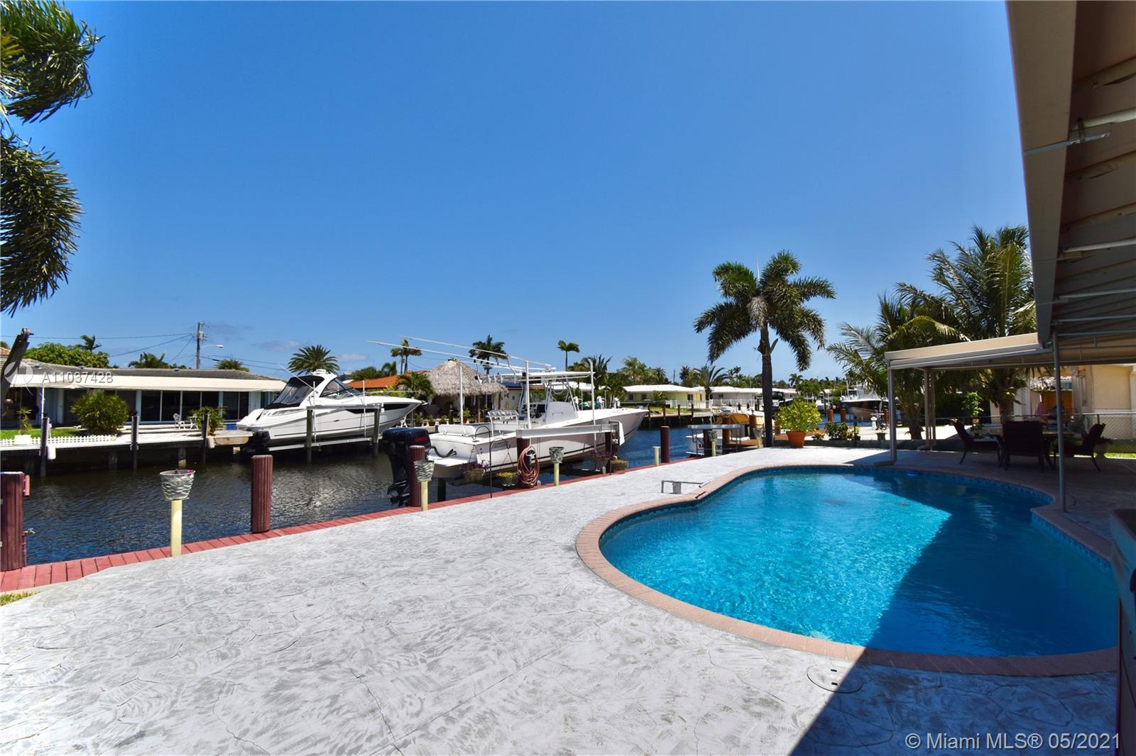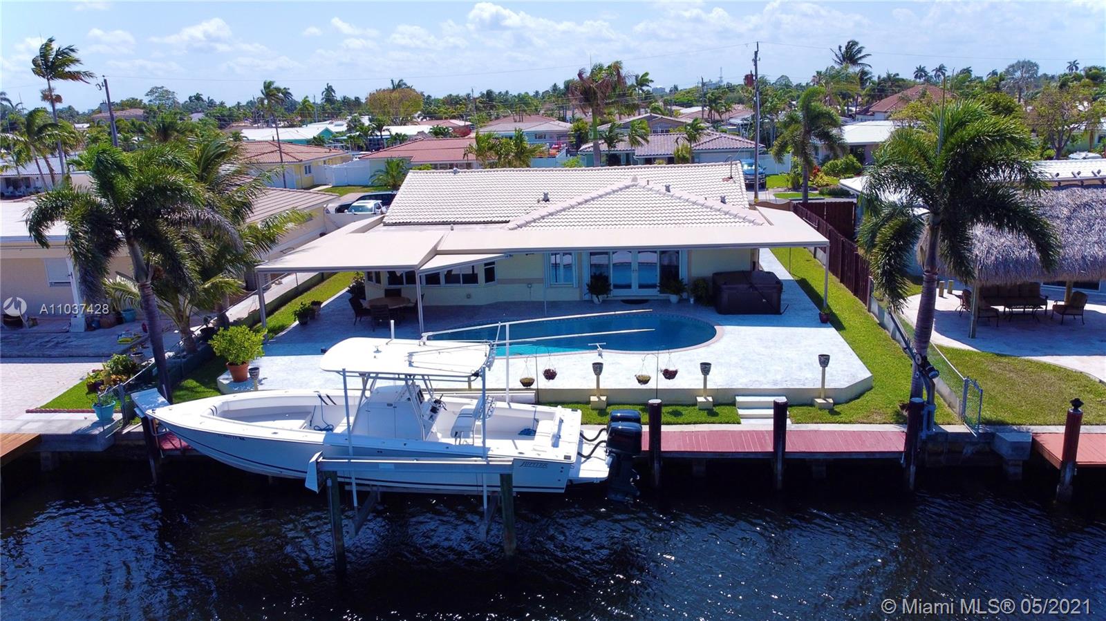 South Florida's Prime Ocean access 15 min,Deep Water Canal dream home, won't last long. With an 2,004 sqft2 this Beautiful, remodeled and addition (2007) of Master Bedroom, Sitting Room, Extra On-Suite Bedroom, Converted garage total 3/2 home in desirable Garden Isles. 2020 - Pool pump ;2018 - Diamond bright resurface pool ;2008 - All plumbing & electrical re-done; 2016 - Flat roof & 2000 - Main Roof ;Partial Impact and hurricane shutters; 2020 - Seawall/pilings ; 2000 - Boatlift 13,000 pounds; Complete Roof Insulation; Open kitchen and patio with salt water pool and outdoor spa make this home the perfect getaway to dock your yacht and enjoy boating at its best. 70’ sea wall and dock. 2 outside storage space, Complete Roof Insulation ,tankless water heater and more.