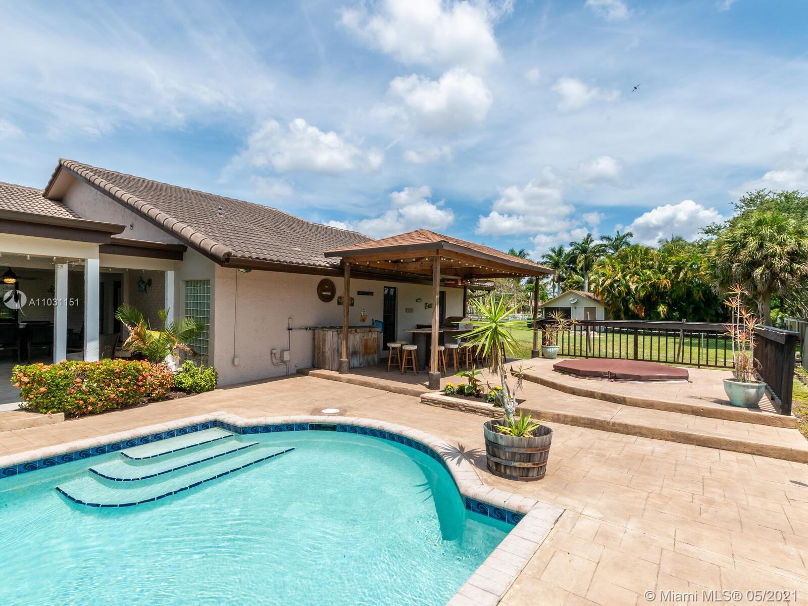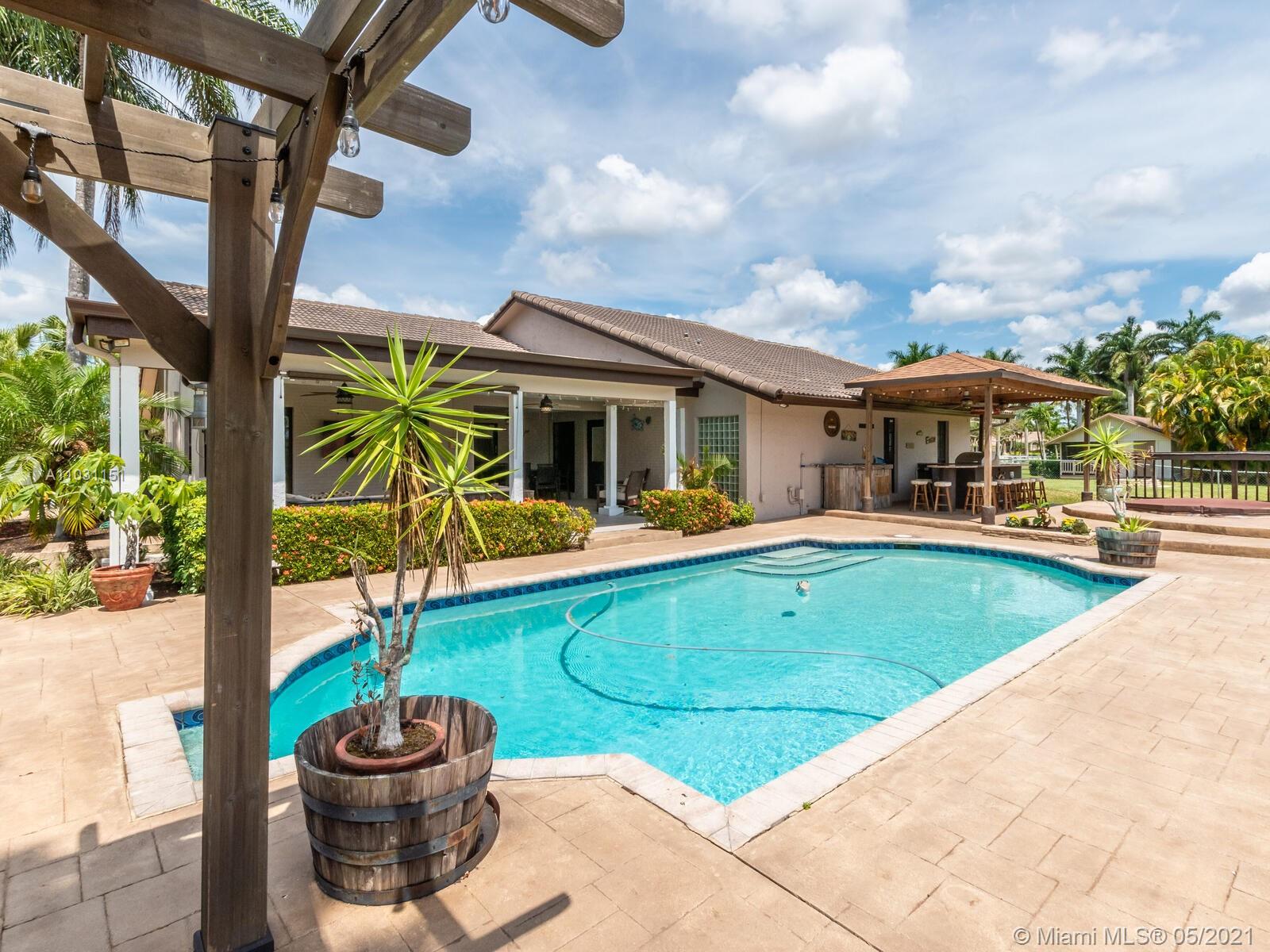 Location and Land!~Plantation~ 1-Story*3BED/2BA W/Pool & 1/1 Guest cottage~situated on .74 acre lot! City conveniences with Country living~Open concept floorplan~Front entry w/french doors that open to a beautiful formal living room & dining rm w/vaulted ceilings. Sunken settee area w/real wood burning fireplace~Second set of french doors in family room lead to the resort syle pool and patio area w/outdoor kithcen, wood look tile in master bedroom w/engineered wood throughout.Remodeled kitchen 2018, New bathrooms 2019,Exterior paint 2019, roof 2007, 2- A/C units*2 Ton unit just replaced in 2020, Patio flooring 2019, Front porch 2019, Generator hook up,paved driveway and walkway to backyard. On site is a darling 1Bed/1Bath guest house for ultimate privacy! Must see and be amazed!!