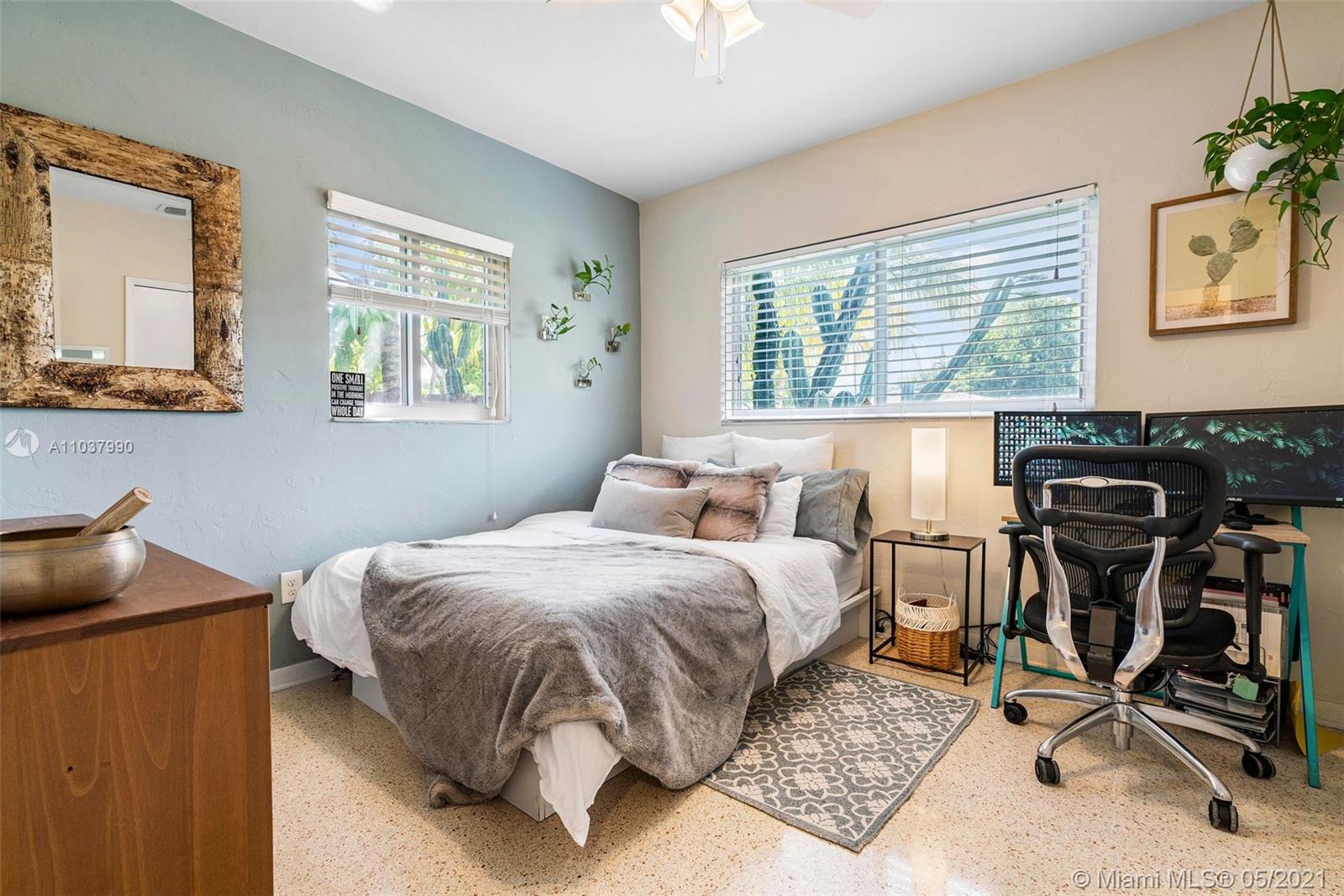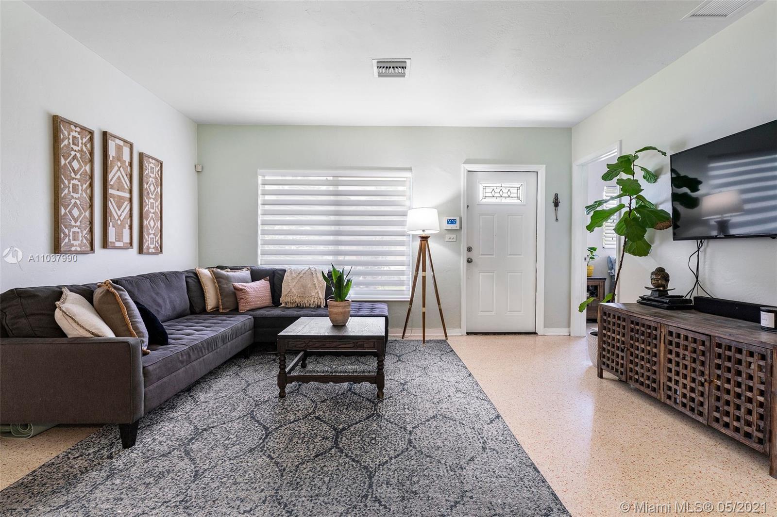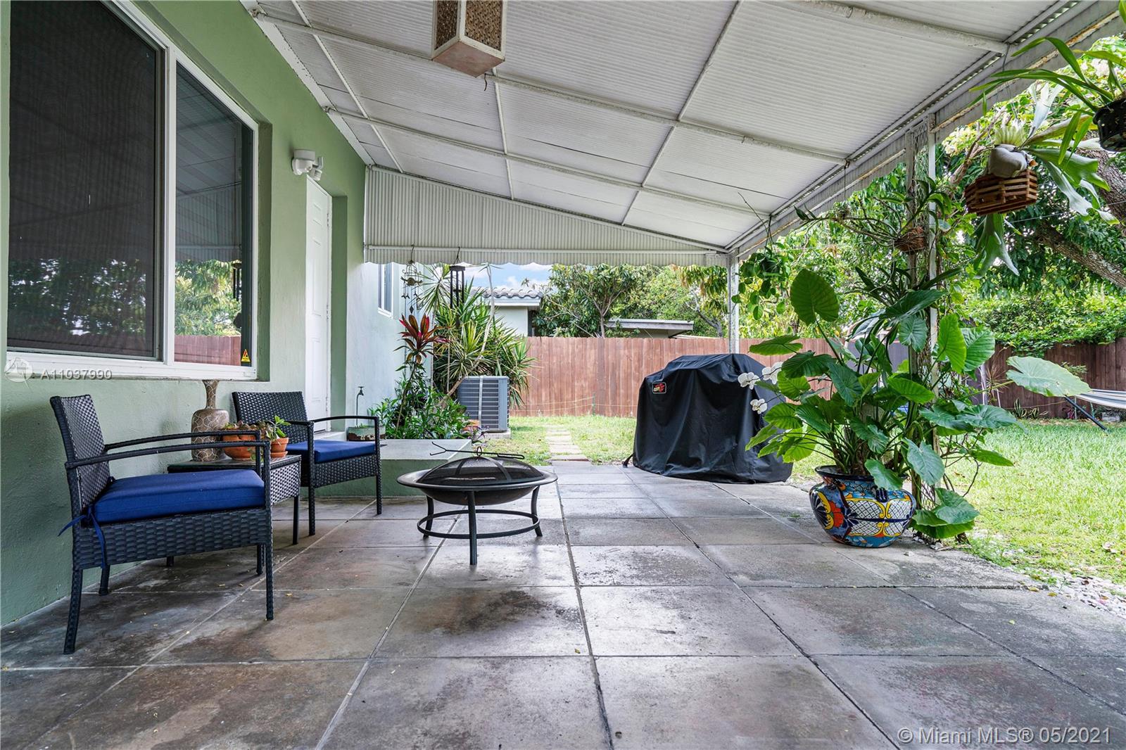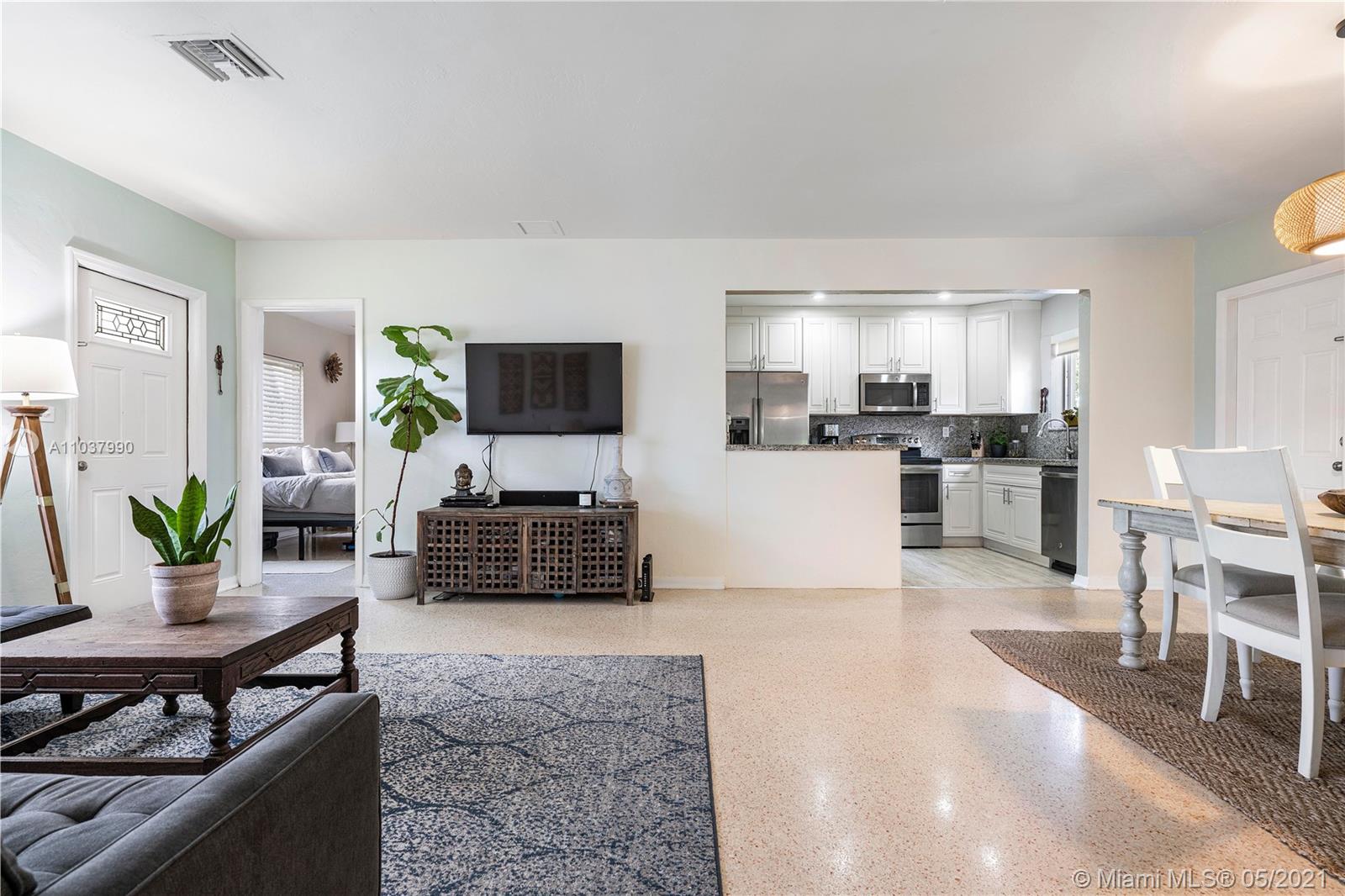 Your Tropical Oasis awaits! This beautiful, tranquil home just 2 miles from the beach is surrounded by lush greenery and has been impeccably maintained. This home offers the curb appeal of modern living comfort. This 3 bedroom, 2 bath home is open concept. The kitchen has been completely upgraded with granite countertops, wood cabinetry, and SS appliances. Gleaming terrazzo floors as well as impact windows and doors throughout. Property includes fully permitted detached shed with custom shelving, and dropdown work table. Full-perimeter fence encloses lush tropical garden which includes a mango tree, moringa tree, grapevine, orange tree, elderberry bush, butterfly garden, and a raised bed with herbs and vegetables. Independent laundry room. Sprinkler system. Close to all major highways