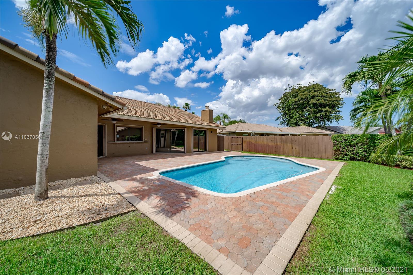This 4BR/2BA Pool home in Jacaranda Lakes is calling you home. Roof 2019, New Electrical Panels, AC 2018, Pool Resurfaced in 2019, Complete Hurricane Protection throughout. This spacious 2,273 sft home features a formal living and dining room, a large eat-in kitchen that overlooks spacious family room, split bedrooms, laundry room, a large fenced backyard with pavered pool deck, and a two-car garage. Note: BCPA has wrong room count, sellers have Blue Prints to confirm 4 bedrooms. Jacaranda Lakes is close to schools, shopping, restaurants, parks and major roads. Low HOA! Your family can make memories to last a lifetime in this home and great neighborhood!!