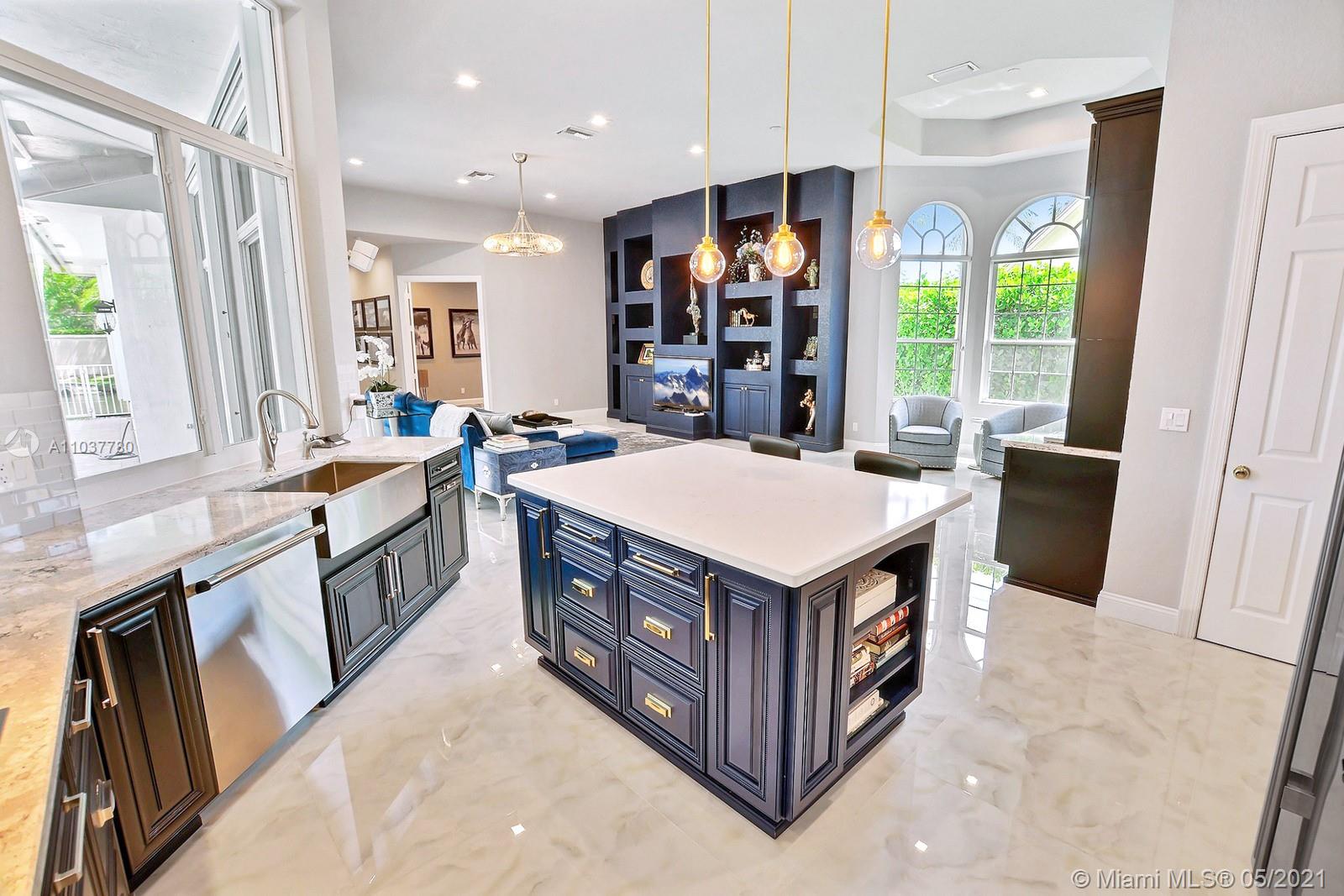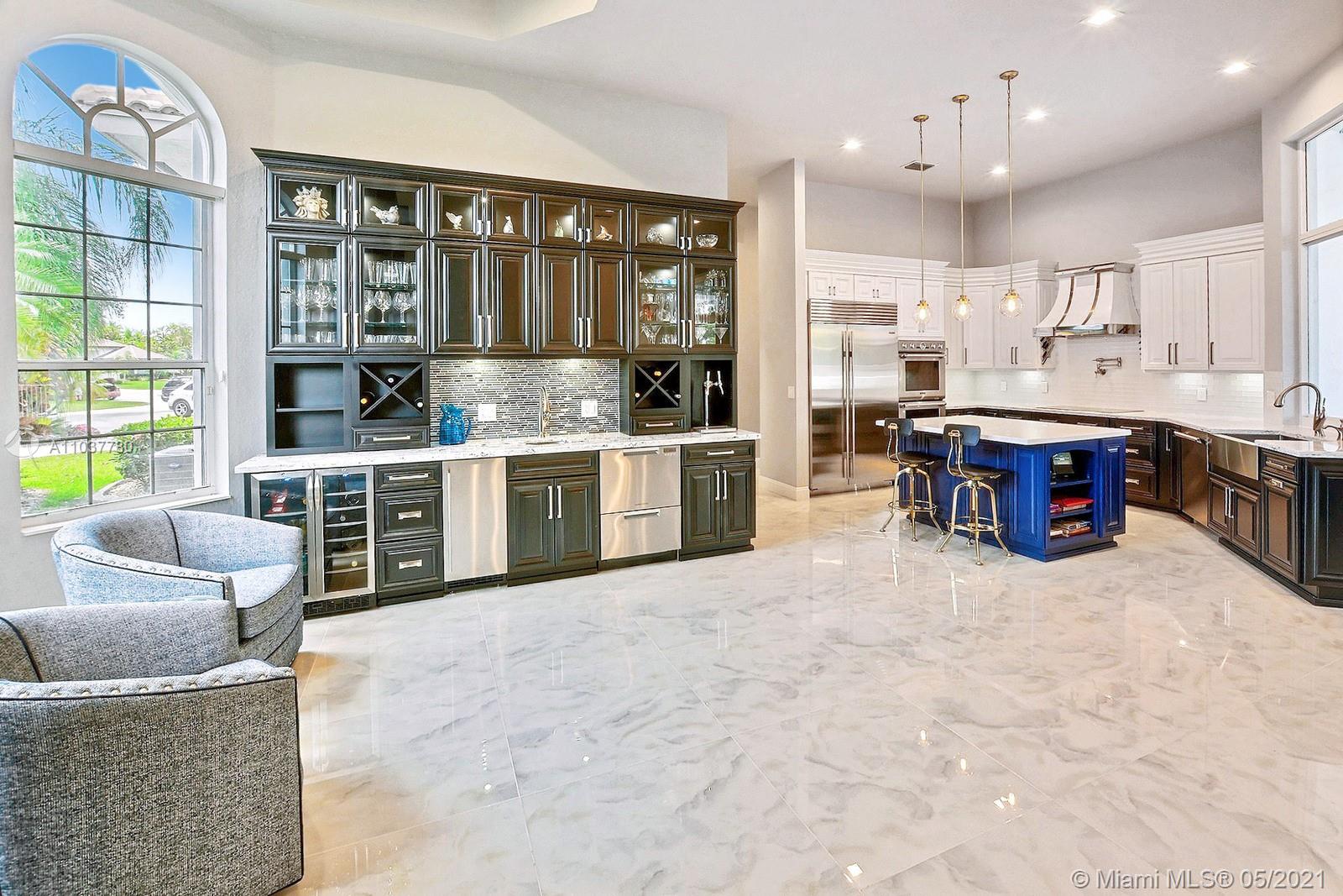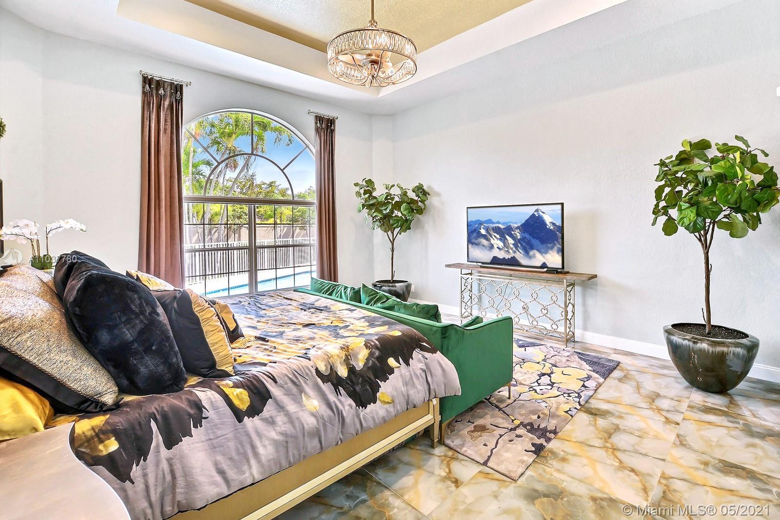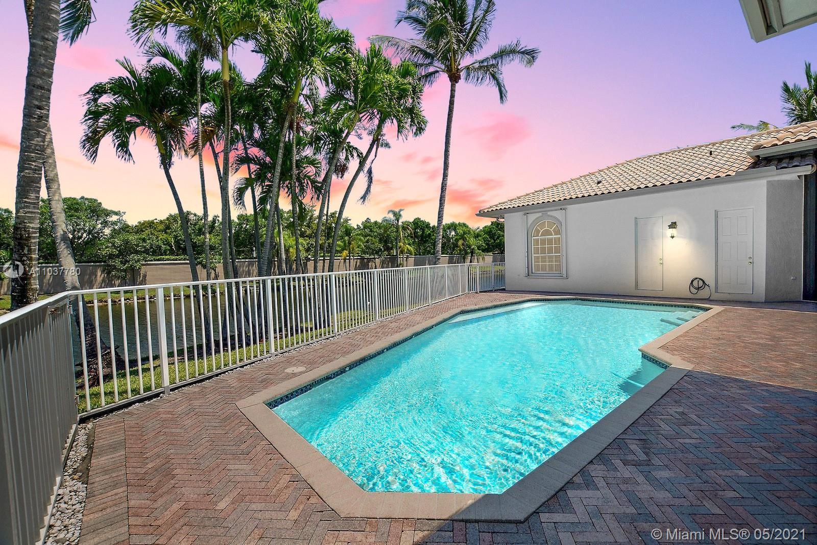 EXPERIENCE ONE OF A KIND WATERFRONT ESTATE POOL HOME. SITUATED IN PRESTIGIOUS PLANTATION PALMS ON PREMIUM CUL-DE-SAC LOT. NO EXPENSE WAS SPARED IN THE RENOVATION OF THIS MAGNIFICENT 5 BED + DEN, 4.5 BATH, 3 CAR GARAGE HOME. ELEGANCE & MODERN DESIGN MELDED TO CREATE THE ULTIMATE IN LUXURY LIVING. GRAND FOYER OPENS TO DRAMATIC GREAT ROOM ACCENTED BY 13' CEILINGS. GOURMET KITCHEN FEATURES CUSTOM CABINETRY, TOP OF THE LINE THERMADOR APPLIANCES, SUB-ZERO REFRIGERATOR, ISLAND & CUSTOM PANTRY. STUNNING WET BAR W WINE FRIDGE, ICE MAKER, DISHWASHER & FILTERED WATER STATION. SPECTACULAR PRIMARY SUITE RETREAT HAS STUNNING SPA BATH COMPLETE W CUSTOM VANITIES, SOAKER TUB & SHOWER W BODY SPRAYERS. ENJOY THE PRIVATE LANAI OVERLOOKING SPARKLING POOL, PRISTINE LAKE AND SPACIOUS YARD TO PLAY IN.