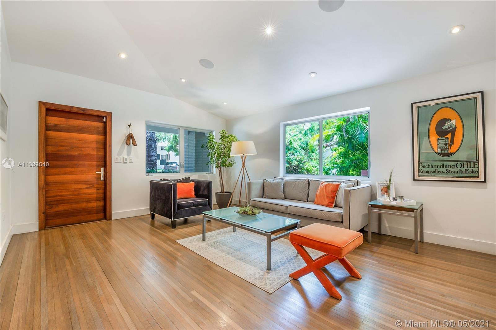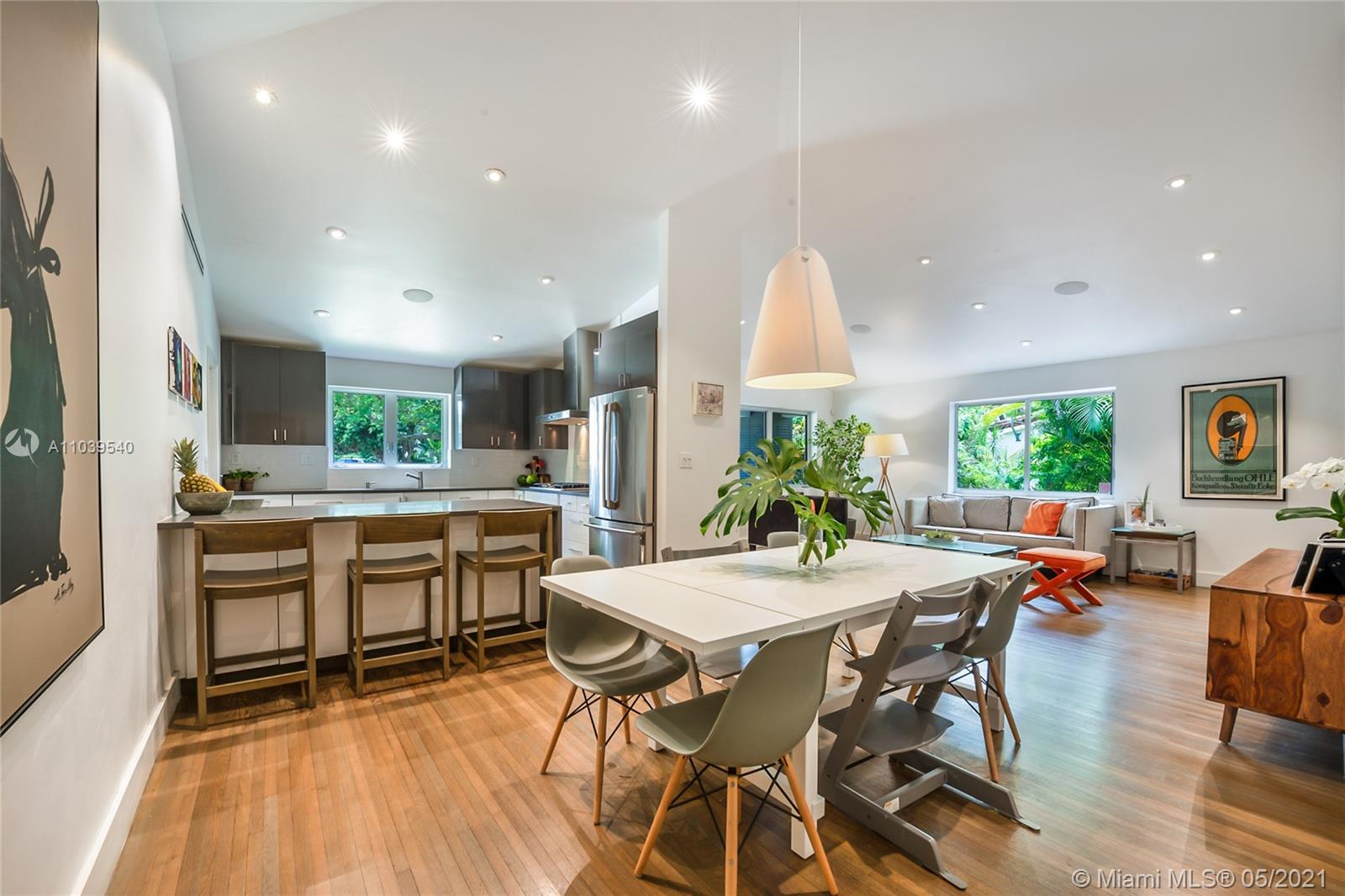 Completely renovated Mid-Century modern home in the coveted Riviera section of South Gables. This sun-filled 4 bed/2 bath home has a wonderful open floor plan with vaulted ceilings that create a spacious atmosphere perfect for entertaining. Upgrades include new tile roof, AC with linear grills, gray washed hardwood flooring and a open kitchen with gas cooktop, quartz counters and stainless appliances. Large impact windows & doors allow for an abundance of natural light and open onto a lushly landscaped backyard with built-in grill and brick patio perfect for dining. Walking distance to Merrie Christmas Park & Ingraham Park and a short bike ride to the shops, restaurants and cafes of Coconut Grove and South Miami. Surrounded by A+ schools and easy access to the airport and the Beaches.