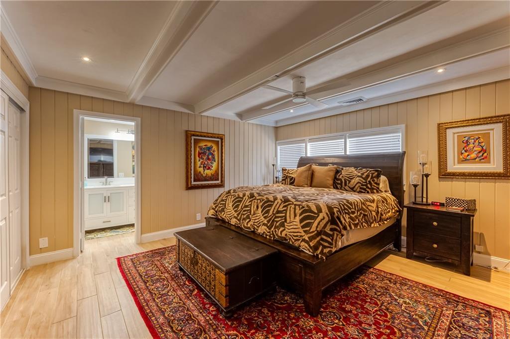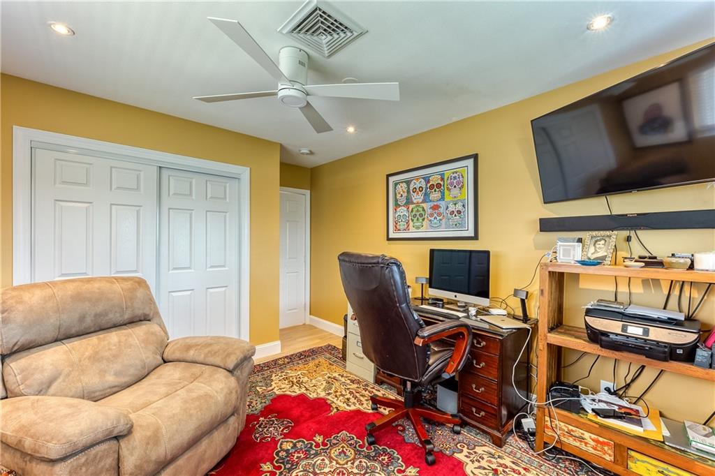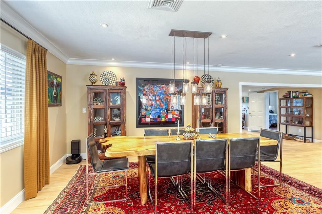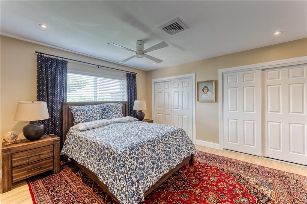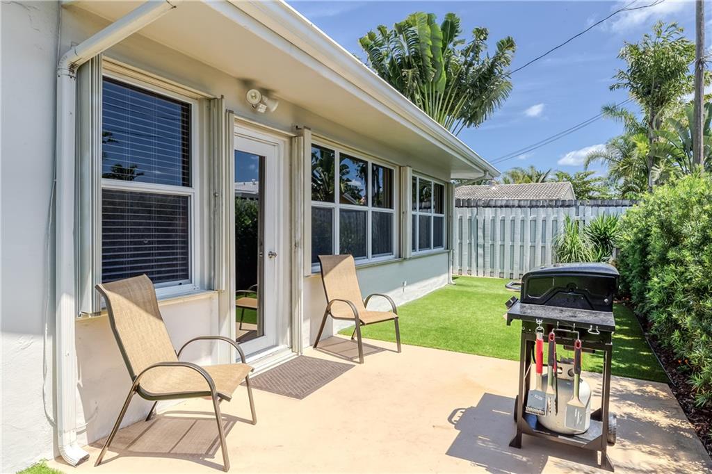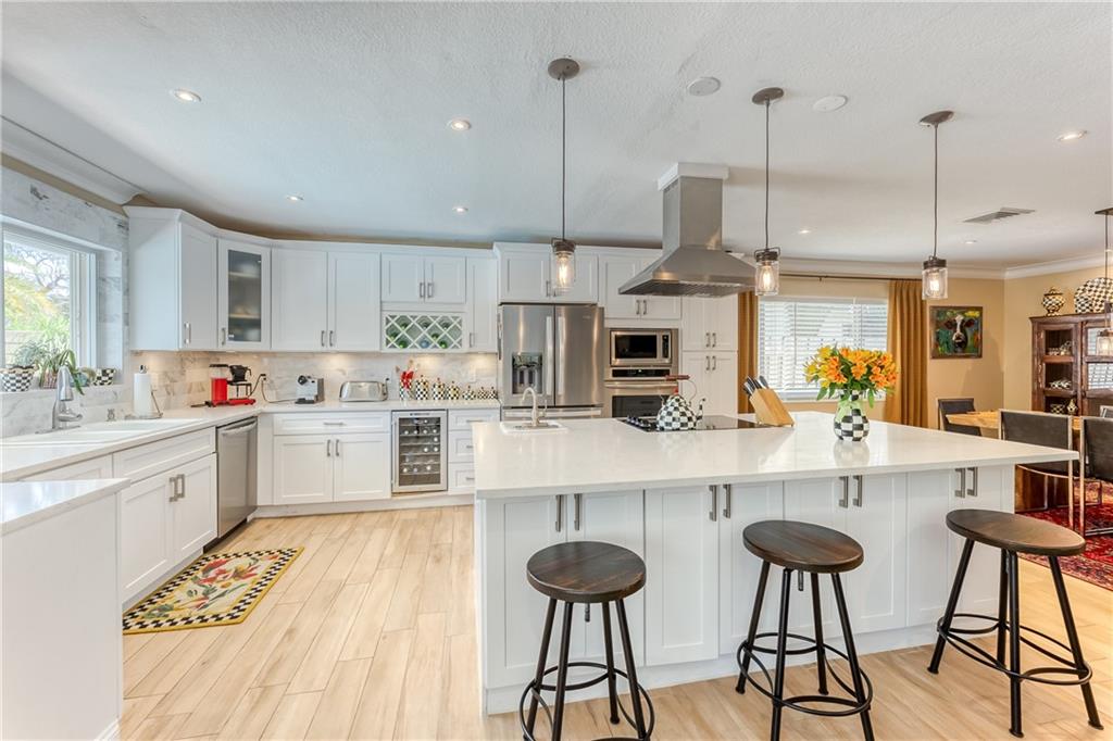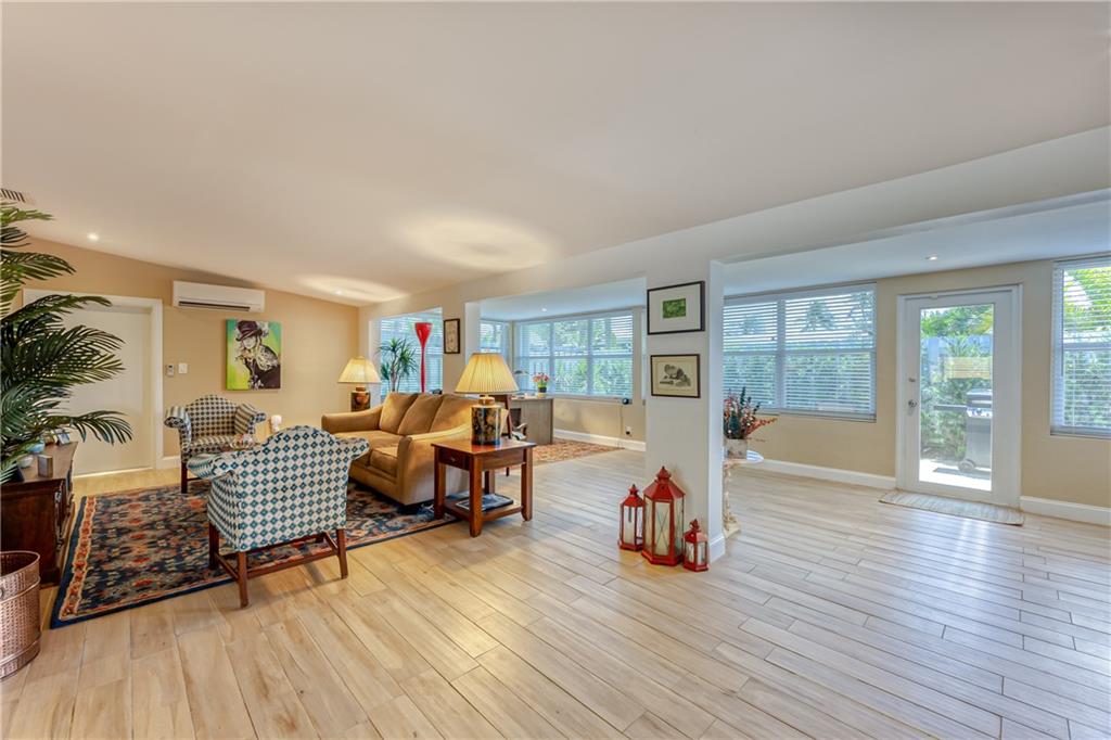 Large Open Contemporary Home in Coral Ridge Isles! Generous 4 bedrooms, 3 bath on a larger lot at 7,538sf. The newly resurfaced solar heated pool with attractive Travertine pavers greets you as you enter your gated compound. Truly open concept living, the kitchen is perfectly situated for entertaining - marble backsplash, quartz counter tops, all stainless steel appliances, cook island & wine cooler. Ceramic plank flooring throughout the house, new central AC system in 2019 with added AC mini split in the 2nd living area. House protected with mostly all impact windows & doors, easy accordion shutters for the back office corner. Two Bedrooms have en suite bathrooms, the other 2 bedrooms share a hall bathroom. Large indoor laundry room too. Welcome home to your private resort!