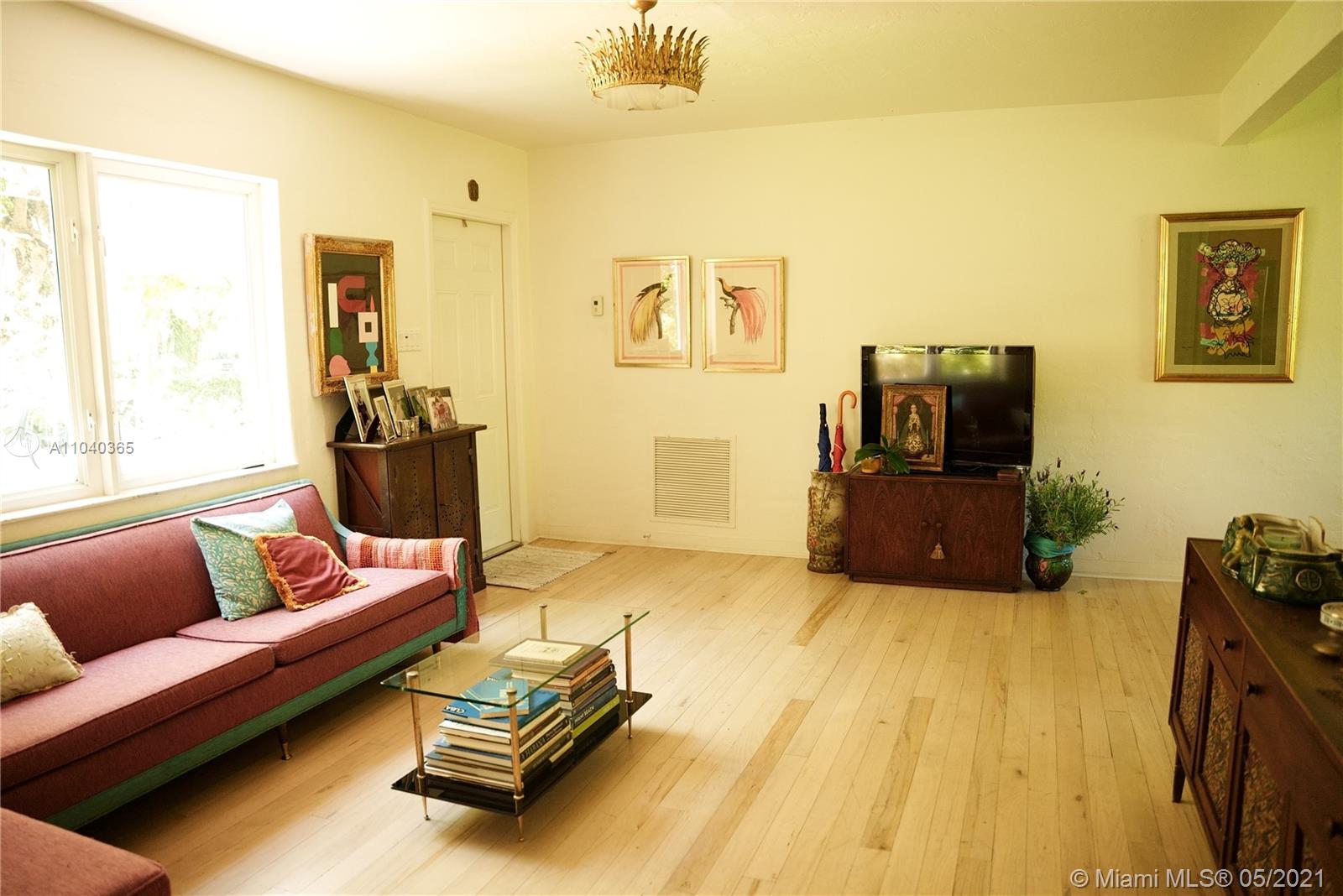 Charming and bright, centrally-located single family home in Coral Gables. Functional and spacious floor plan with two bedrooms plus a sunroom, which can be used as third bedroom or office. Brand new roof, impact windows, electrical, bathroom. Bleached oak and pine hardwood floors with ceramic tile in bathroom and kitchen. Mature oak and fruit trees, and flowering plants on lush, green lot with sprinklers. Ample closets and garage with storage loft. Perfect location in a residential neighborhood with tree-lined streets and parks. Direct access to US1 or Le Jeune Road, downtown Gables or Grove. Walk to magnet schools, UM, Underline, Metrorail, trolleys, Merrick Park, soon-to-open Trader Joe’s and Lifetime Fitness. All vintage lighting excluded. Call owner/agent Olga Granda 305-528-4539.