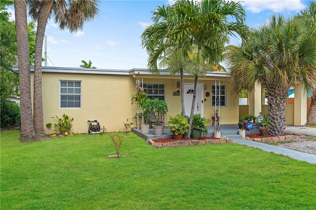 Adorable turn-key 3 bedroom 2 bath with separate storage room/office. Beautifully maintained and updated with newer tile floors & stainless steel appliances. There is plenty of room to entertain guests with this spacious open floor plan and eat in kitchen. Enjoy the serenity of the quiet neighborhood from your cozy front porch and the privacy of a full fenced in yard complete with an above ground Jacuzzi & coconut trees. Feel comfortable with the security of a carport, alarm system, & hurricane protection for all the windows. Save time, with everything you need conveniently at your fingertips! You'll be walking distance to Walmart & Highlands Park. ONLY A 5 MIN DRIVE FROM THE BEACH, schools, restaurants & malls, and much more!