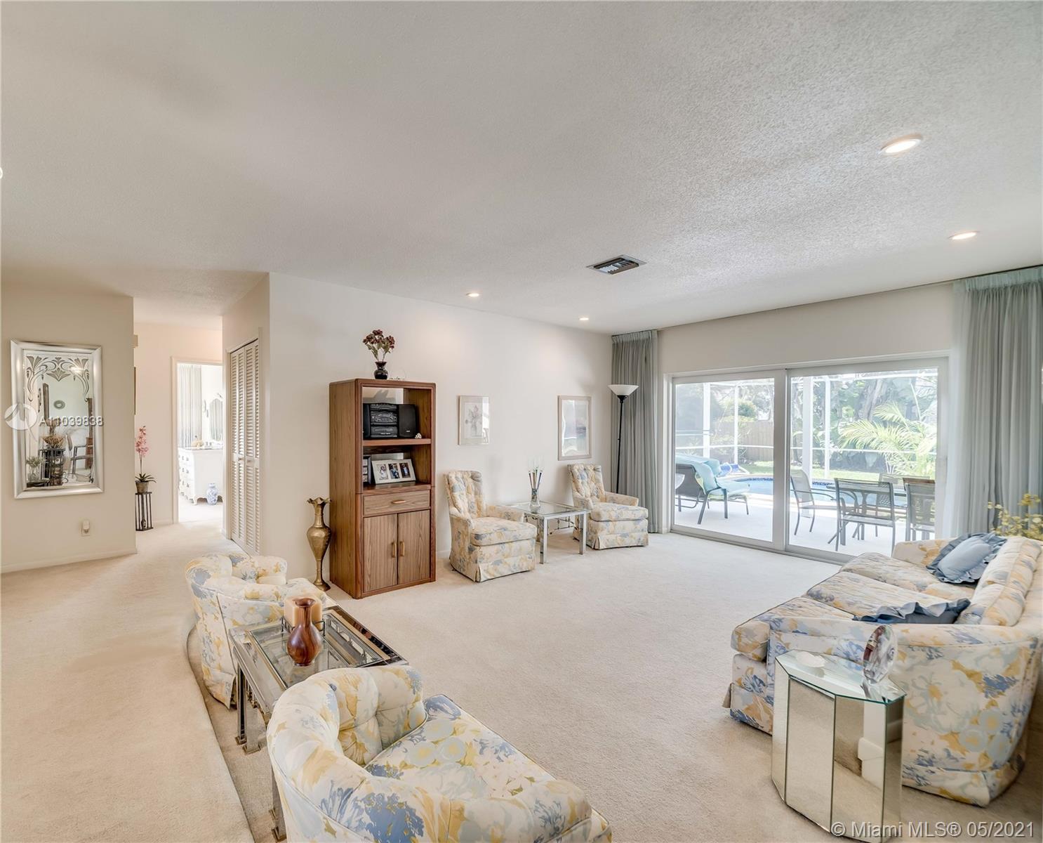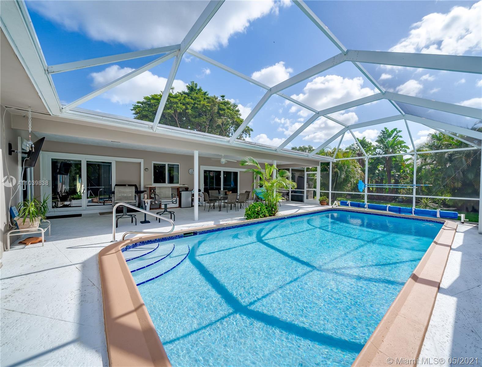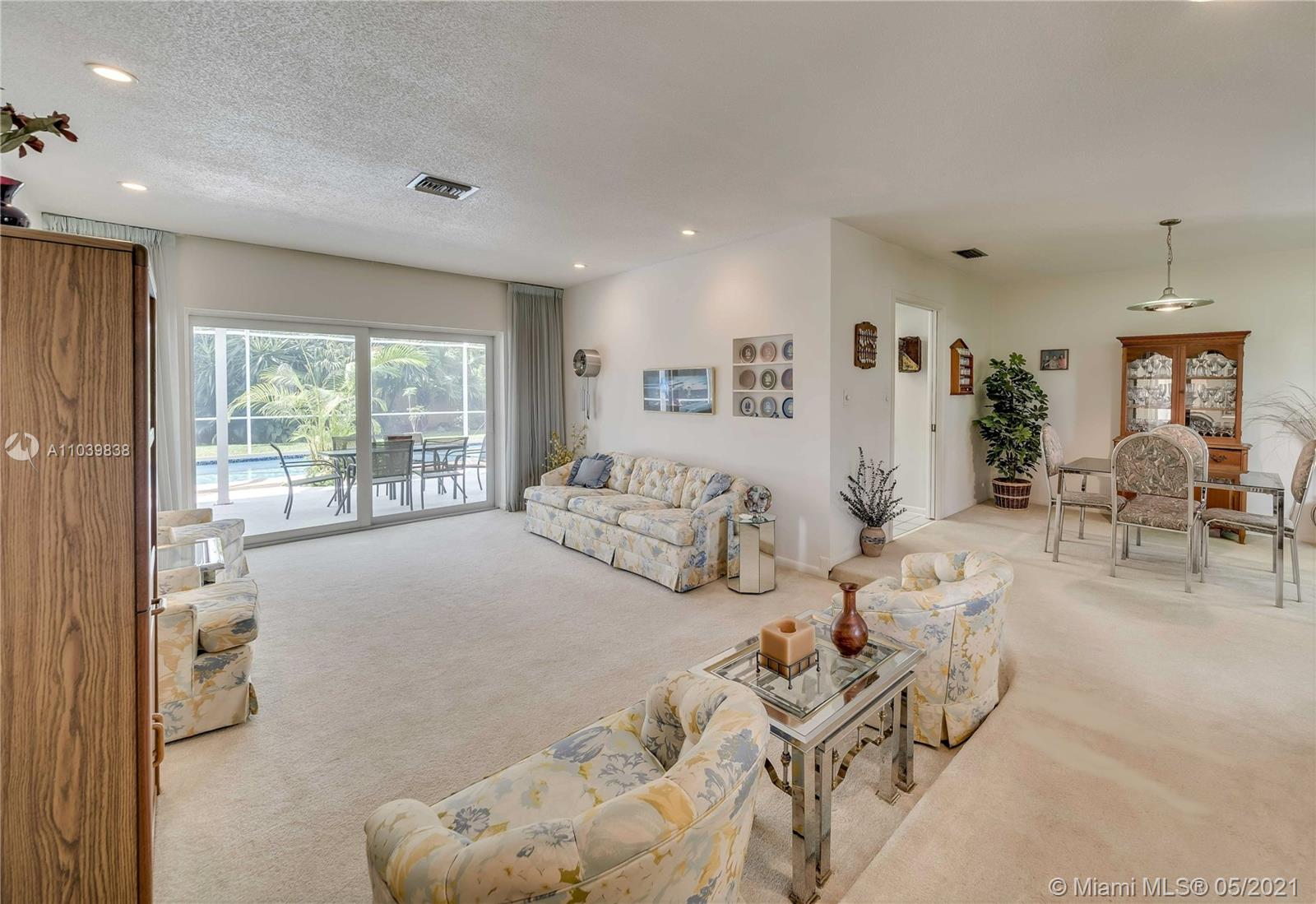 Lovely 3/2 Home in Desirable 24 Hr Gated Community: EL DORADO ESTATES. This home's layout has a split bedroom floorplan with a living room, family room and a separate dining area. The screened in patio with a Diamondbrite pool make it a perfect area for entertaining. The large fenced backyard has huge palm trees providing privacy. The newer installed Impact Windows not only are the best for Hurricane protection, but also provide soundproofing and Energy efficiency. It also has Solar Panels. Community offers Guard Gate, Clubhouse, Residents only Children’s playground, Tennis and Volleyball courts. Close to downtown, shopping, restaurants and all major highways.