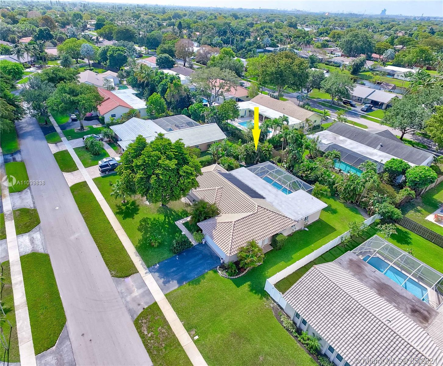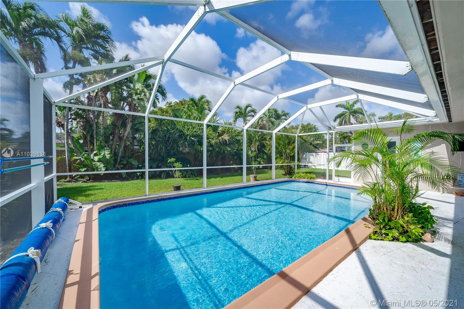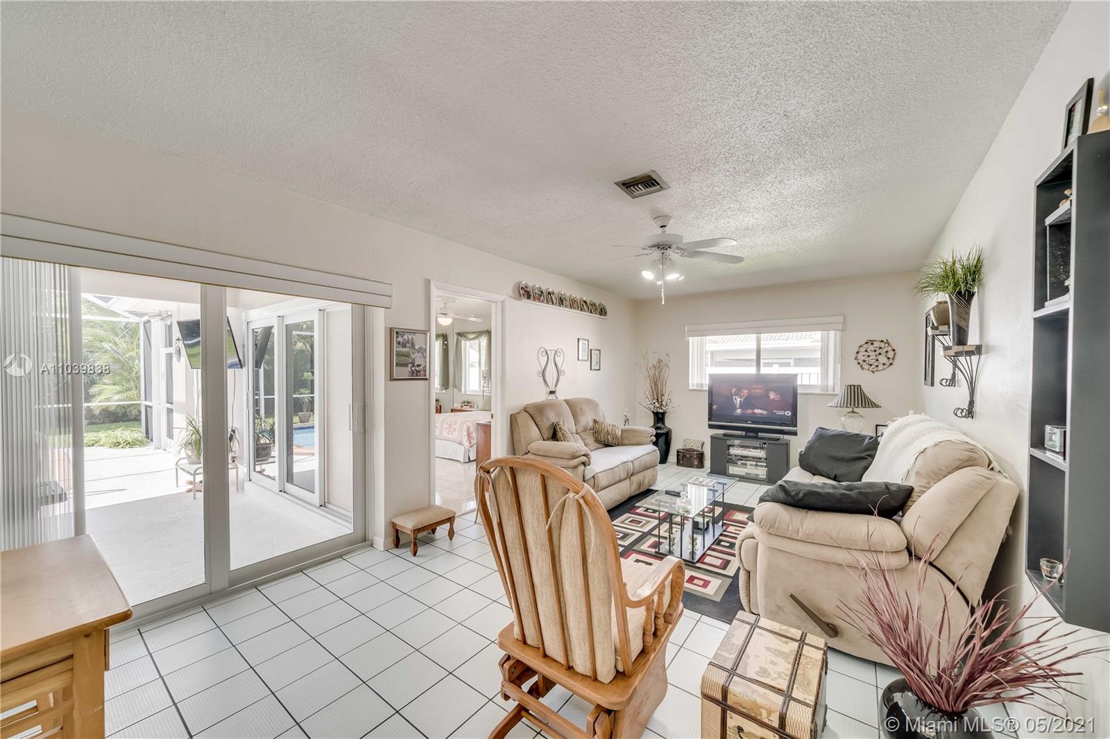 Lovely 3/2 Home in Desirable 24 Hr Gated Community: EL DORADO ESTATES. This home's layout has a split bedroom floorplan with a living room, family room and a separate dining area. The screened in patio with a Diamondbrite pool make it a perfect area for entertaining. The large fenced backyard has huge palm trees providing privacy. The newer installed Impact Windows not only are the best for Hurricane protection, but also provide soundproofing and Energy efficiency. It also has Solar Panels. Community offers Guard Gate, Clubhouse, Residents only Children’s playground, Tennis and Volleyball courts. Close to downtown, shopping, restaurants and all major highways.