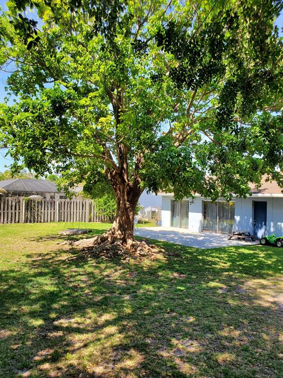 Boca Raton Single Family Starter Home that is perfectly located within the Palm Beach County School district . This oversized lot has a huge Fenced Backyard with plenty of shade that is perfect for entertaining, a Large Patio 26 x 17, & fruit trees. This 3 bedroom 2 bath home features an open floor plan, Kitchen, Tiled Floors, Vaulted Ceilings, Storage, Hurricane Protection, Impact Windows, Ceiling Fans, and a Circular Driveway in the front The water feeds from the canal.