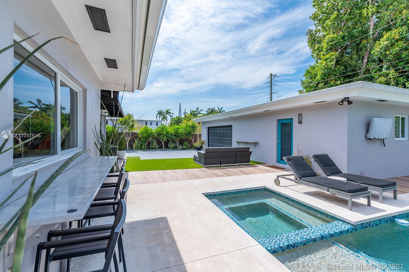 La Dolce Vita! This special residence is the epitome of South Florida Living; it sits on an over-sized lot w/a private backyard perfectly landscaped & newer modern pool & jacuzzi for six, bbq area, ready for entertaining. The home includes modern oversized porcelain floors, gourmet kitchen, dry bar w/back lit onyx, beverage/wine chiller, a spa-like master suite w/calacatta marble style porcelain. Separate en-suite which is perfect for a mother-in-law suite, nanny or Air BNB, with a separate entrance. Two Car Garage, Carport, Custom Fencing & Landscape, Impact Windows & Doors. Great proximity to beaches, upscale dining, and shopping. Minutes to the airport, Port Everglades and major highways.