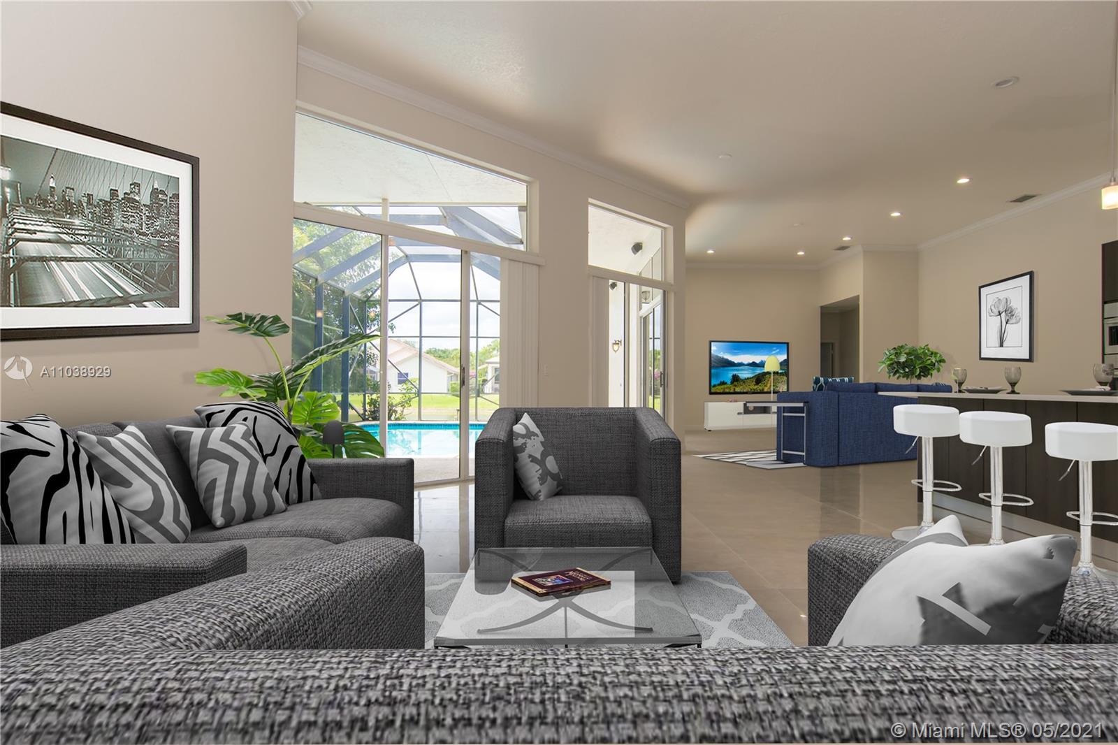 WESTON HILLS 5bed/3 bath home. Lake and pool. Remodeled kitchen and baths. Totally open floor plan with a modern sleek design kitchen in the center. The kitchen’s gorgeous over sized quartz island has sitting area for guests to sit and observe your latest recipes in action on the Bosch new SS appliances. The home 3-way split layout has the Master suite in one wing of the house for privacy, 3 bedrooms sharing the second bath and the last bedroom has a bath which can be used as the guest bath. Private heated pool deck to relax and enjoy.