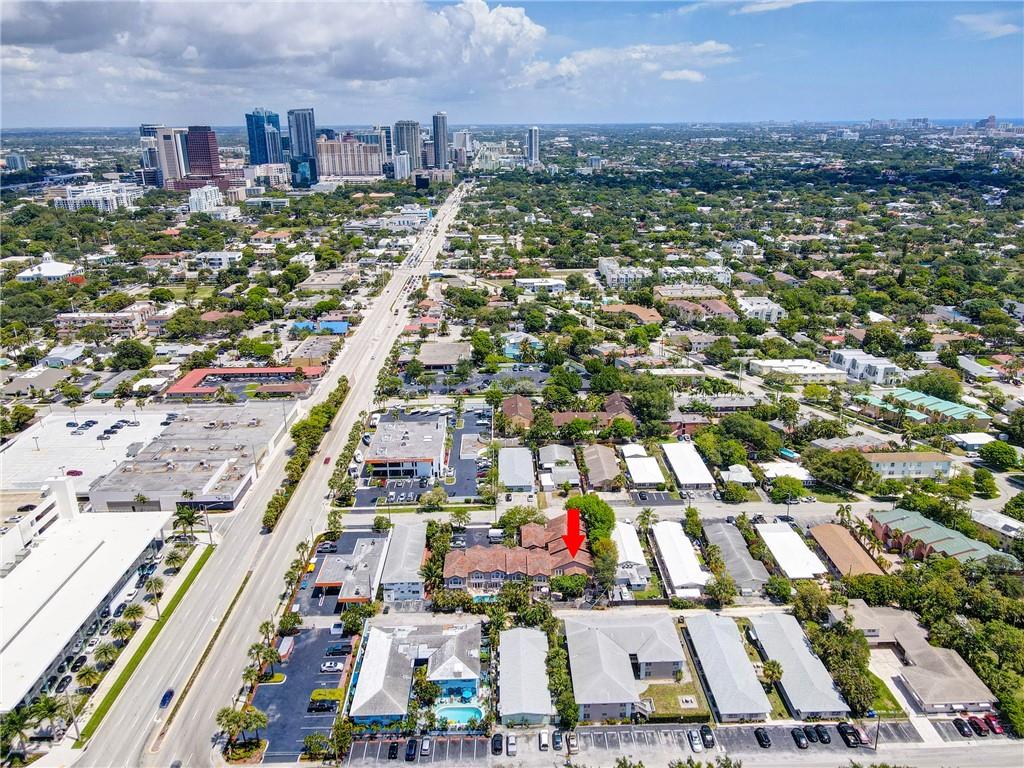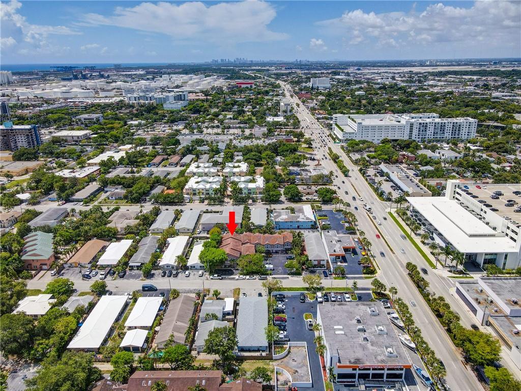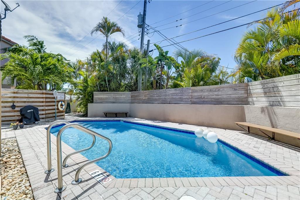 Modern 2 bedroom/2.5 bath townhome located in highly desirable East Fort Lauderdale. Situated just minutes from Las Olas, Whole Foods, Port Everglades and Fort Lauderdale-Hollywood International Airport. Open concept design with granite counters, stainless steel appliances and recessed lighting throughout. This is the largest unit in the complex featuring a unique loft that is accessible from both a spiral staircase and from the second floor bedroom. This corner unit features tons of natural lighting from every angle. The home also features a large private patio and a second floor balcony. Paver walkways and patio with a private community pool. No rental restrictions and no HOA approval needed. Perfect for family or income producing rental property.