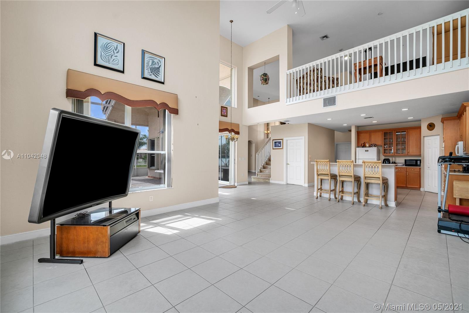 The LARGEST CORNER LOT in Miramar, Sunset Lakes! Well kept Gated community and near to top rated schools! Great commuting distance to Miami and close to shopping malls, restaurants, and entertainment. This home features a 5 Bedrooms, 5 Bathrooms with 3 car garage. Master suite and 1 bedroom with 3 full bathrooms downstairs. This home is very spacious with vaulted/volume ceilings, tile flooring, a large kitchen with center island, and wood cabinetry. A large Loft on the second floor; enough space to put an additional indoor gym or office room. Screened in porch with the most amazing, stunning views of the lake! Let this be your next tropical oasis from all the noise! UPCOMING SHOWINGS START OPEN HOUSE SAT 5/22: 12-4PM & SUN 5/23: 1-5PM