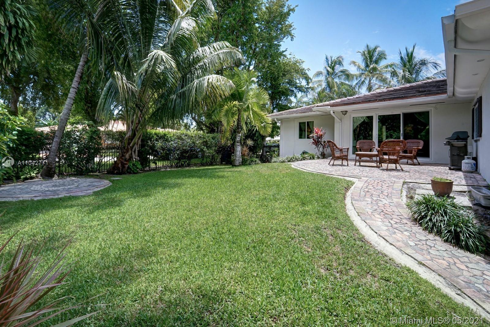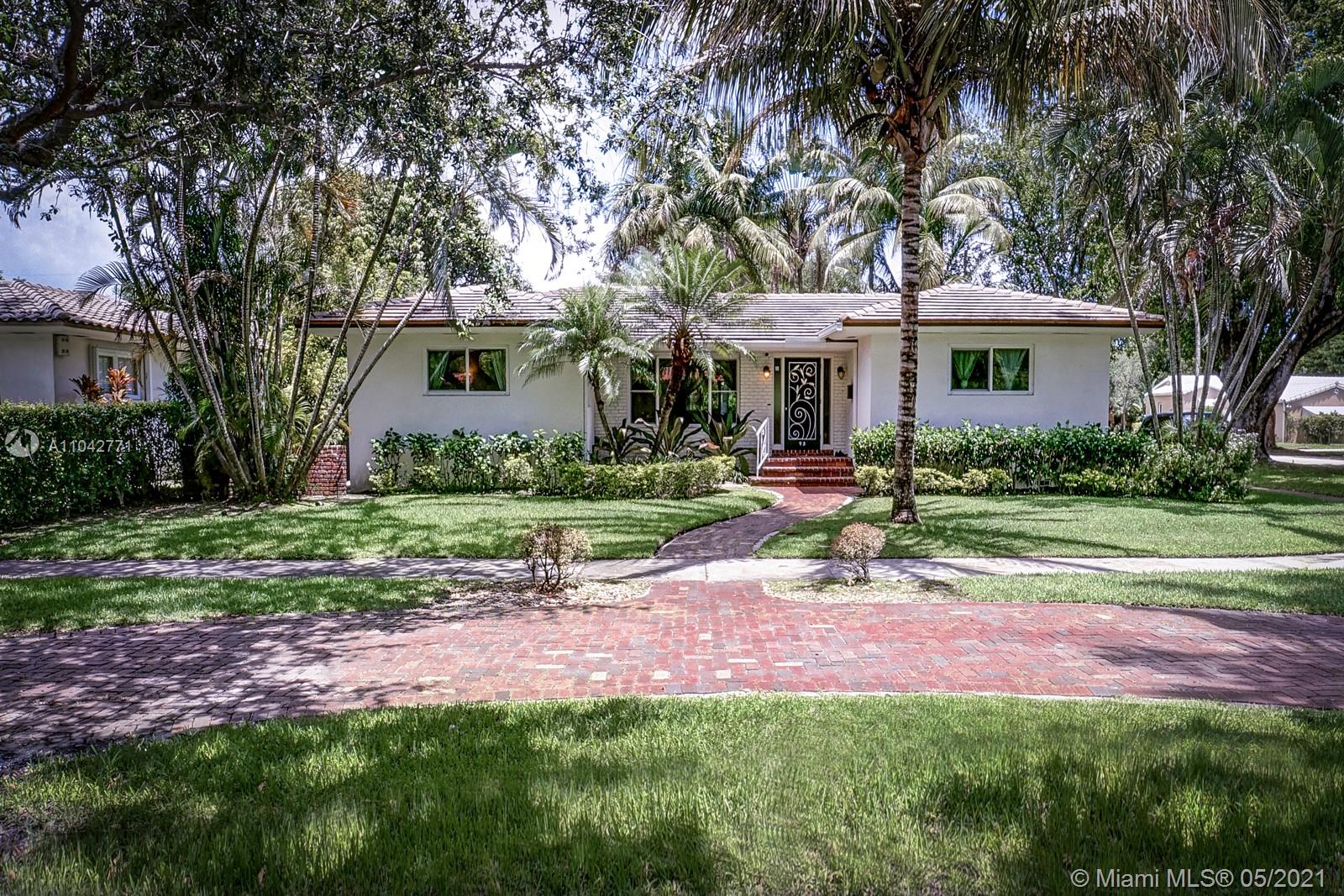 Light and bright renovated home on a quiet, tree-lined street in the heart of Miami Shores. Featuring hurricane impact windows/doors, updated bathrooms and kitchen, 4-year-old septic system, updated plumbing, newer roof, and brand new AC handler. Gorgeous hardwood floors and a split, open floor plan with living area overlooking a beautifully landscaped garden - with plenty of room for a pool. Large bedrooms, ample closets (including a walk-in closet in the master), dedicated laundry room with second full-size refrigerator, and tons of storage space. Corner, fully fenced lot with an electric gate leading to a 2 car carport and a 2 car garage. An easy walk to the restaurants and shops of downtown Miami Shores, library, and parks. Won't last! (Per owner, home is 2074sf.)
