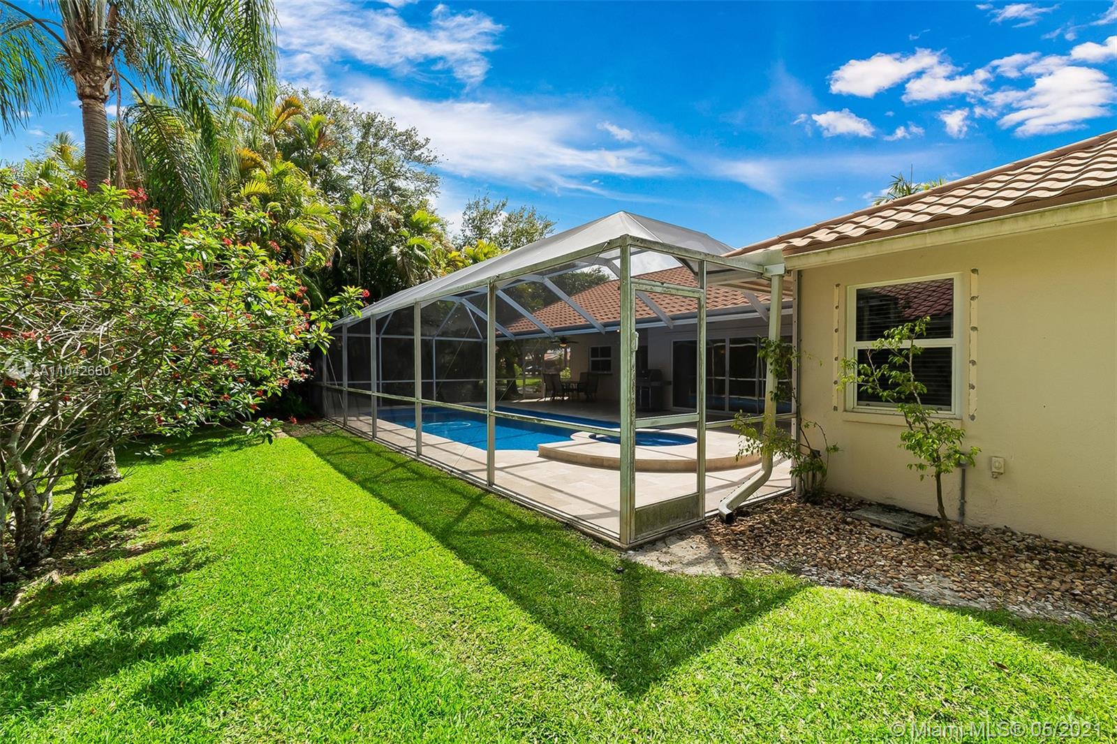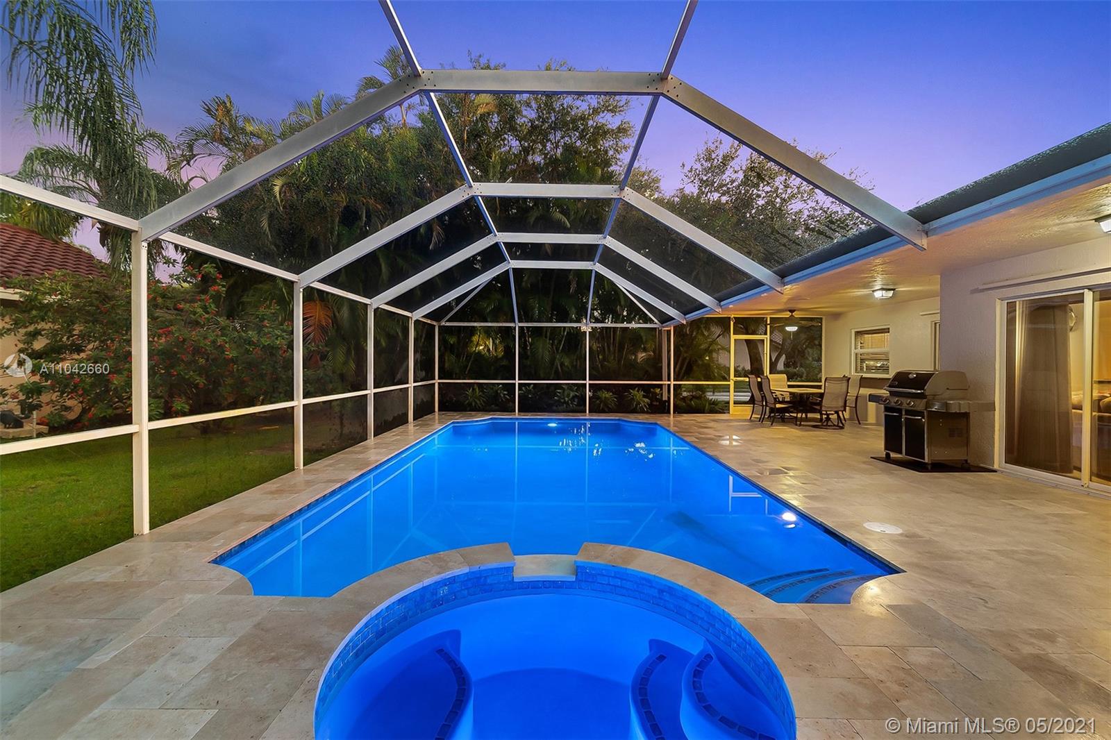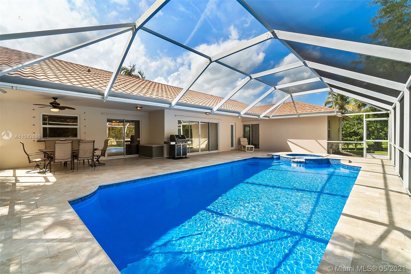 Welcome to 5025 NW 97th Drive in desirable North Springs! This spacious 5-bedroom, 2-bath home on a lushly landscaped corner lot features updated kitchen and baths, a delightful pool area, and a side-entry 3-car garage. Enjoy the simplicity of neutral finishes throughout, stainless steel appliances, and plantation shutters in the bedrooms. The screened patio and new pool with new pool heater surrounded with travertine pavers is the perfect spot for morning coffee, afternoon exercise, and evening entertaining. This immaculate home is topped with a durable metal roof for decades of wear. A whole-house generator, hurricane impact windows, and shutters for all sliders provide peace of mind during storm season.