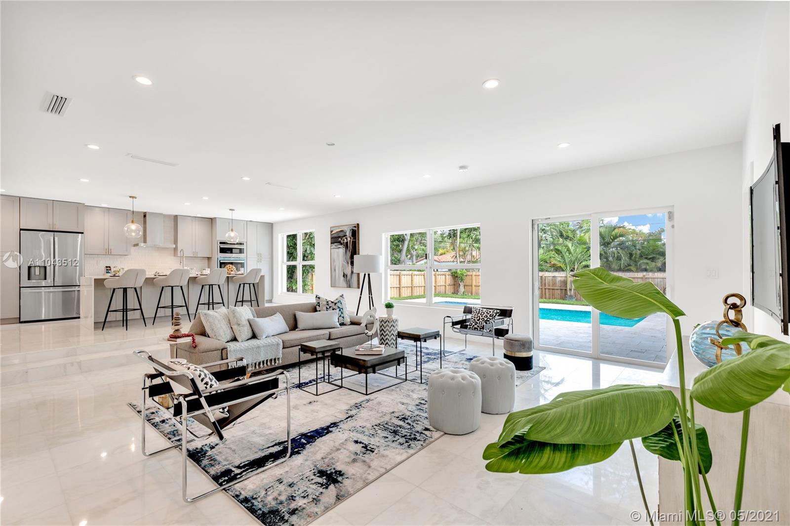 Amazing opportunity to own a stunning and completely renovated property in desirable Miami Shores. Open floor plan & modern details throughout the house. Stunning kitchen w/stainless steel appliances, quartz countertops w/ample cabinets overlooking a huge florida room. Master suite w/ walk in closet. Inspired zen bathroom w/ double sink & gorgeous tub. Sparkling brand new pool w/gorgeous backyard. Every detail has been thought of in this new 3 bedrooms -3 bathroom home. New roof, plumbing, electrical, AC's. Impact doors & windows.
