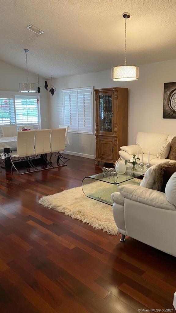 Beautiful turnkey home on a large cake-shaped lot with a beautiful water channel behind it, in a cul-de-sac. Fully remodeled kitchen (wood cabinets, granite and stainless steel appliances) and bathrooms (artfully placed wood, granite and tile cabinets), Brazilian cherry wood floors throughout. Plantation blinds, high efficiency air conditioning unit, paved walkway, driveway and extended patio. Freshly painted exterior. Accordian Shutters. Wooden pergola and barbecue. Hands down the most beautiful home in Weston in this price range. Include furniture.