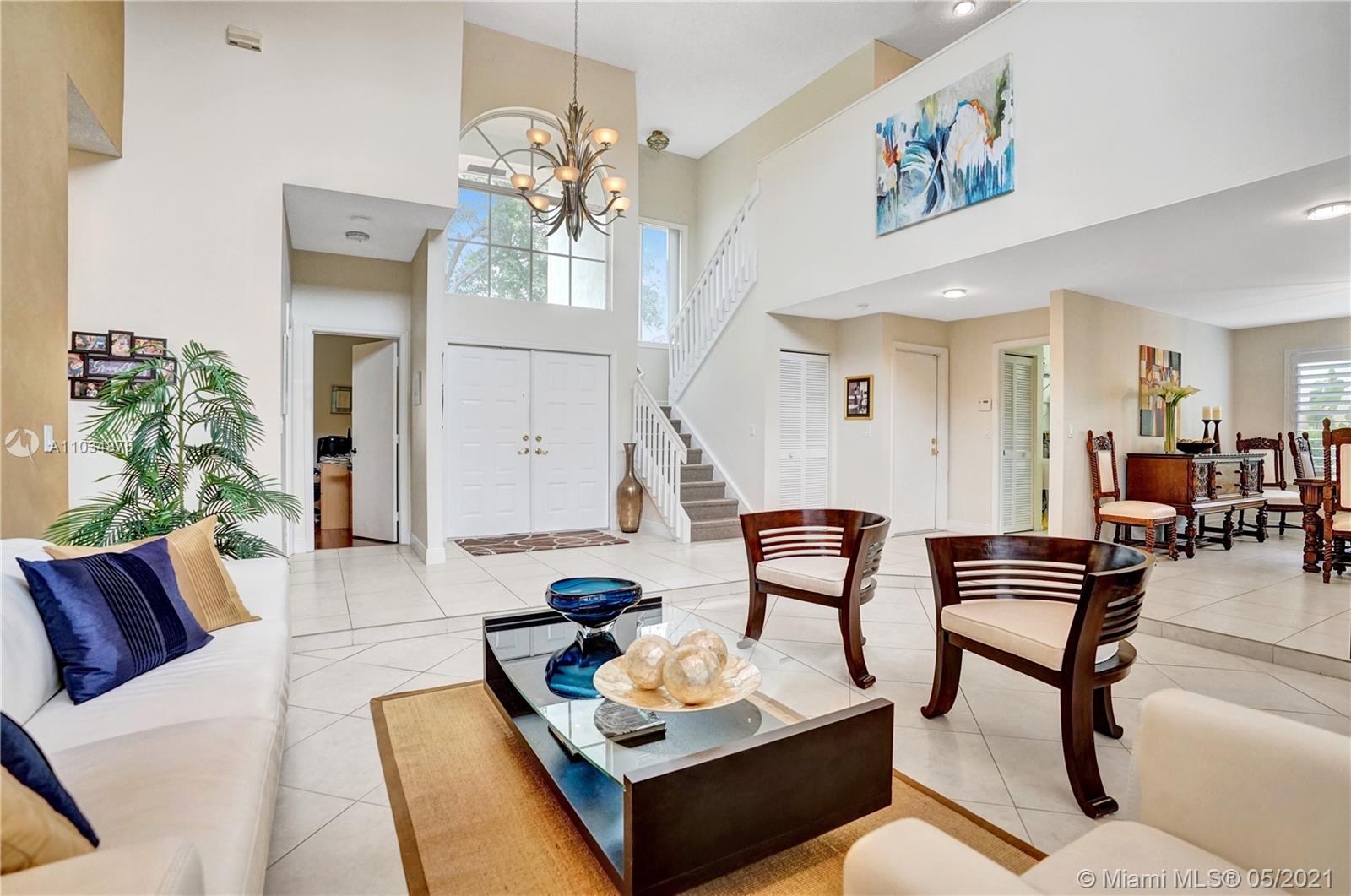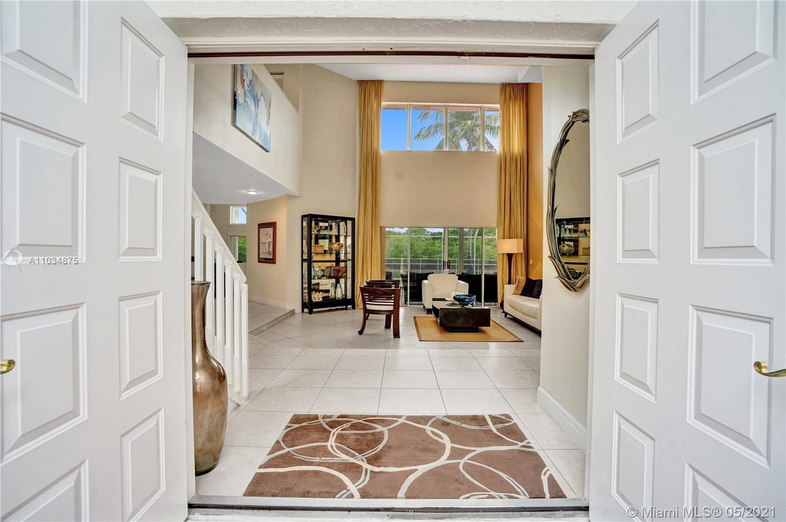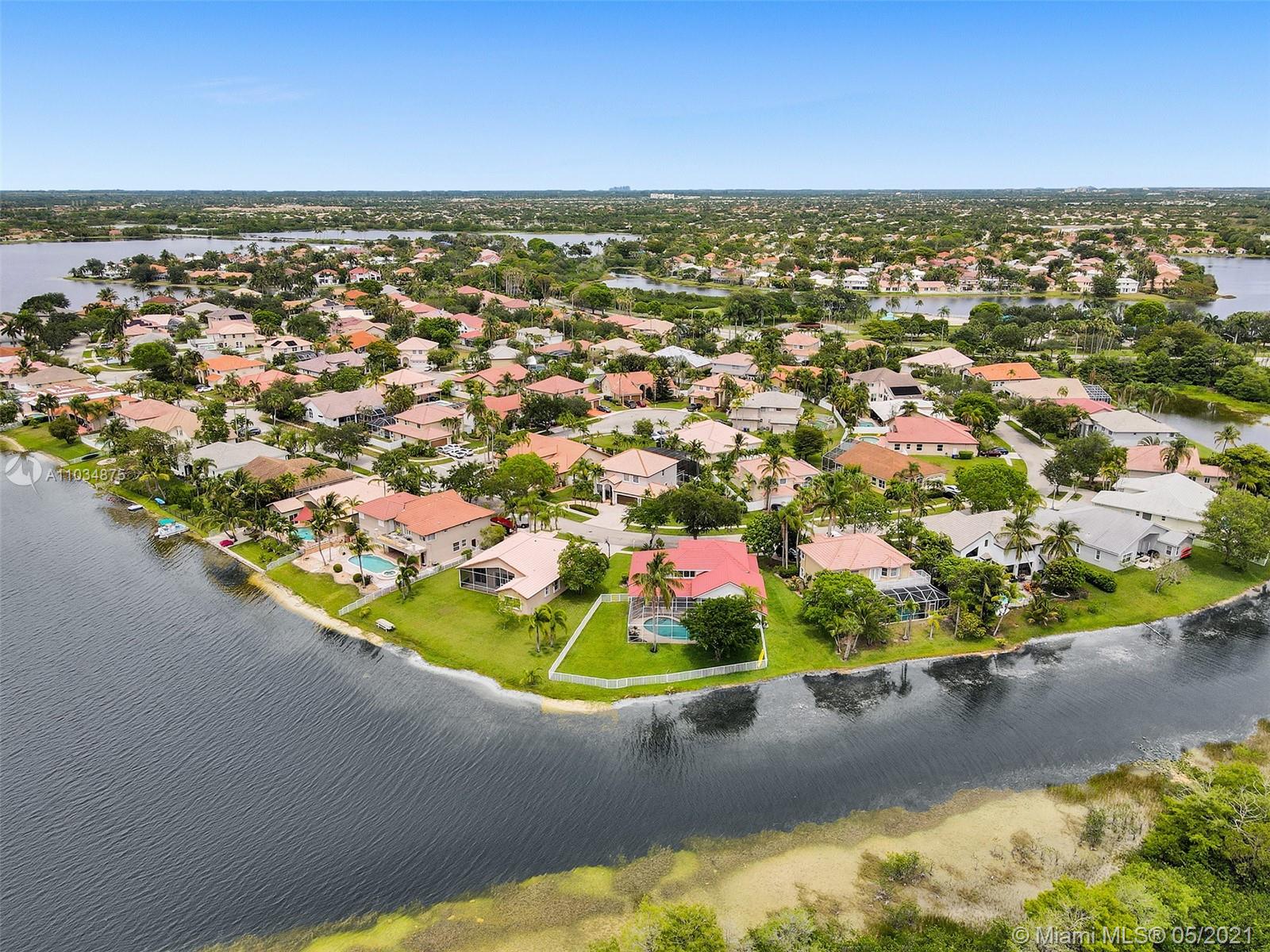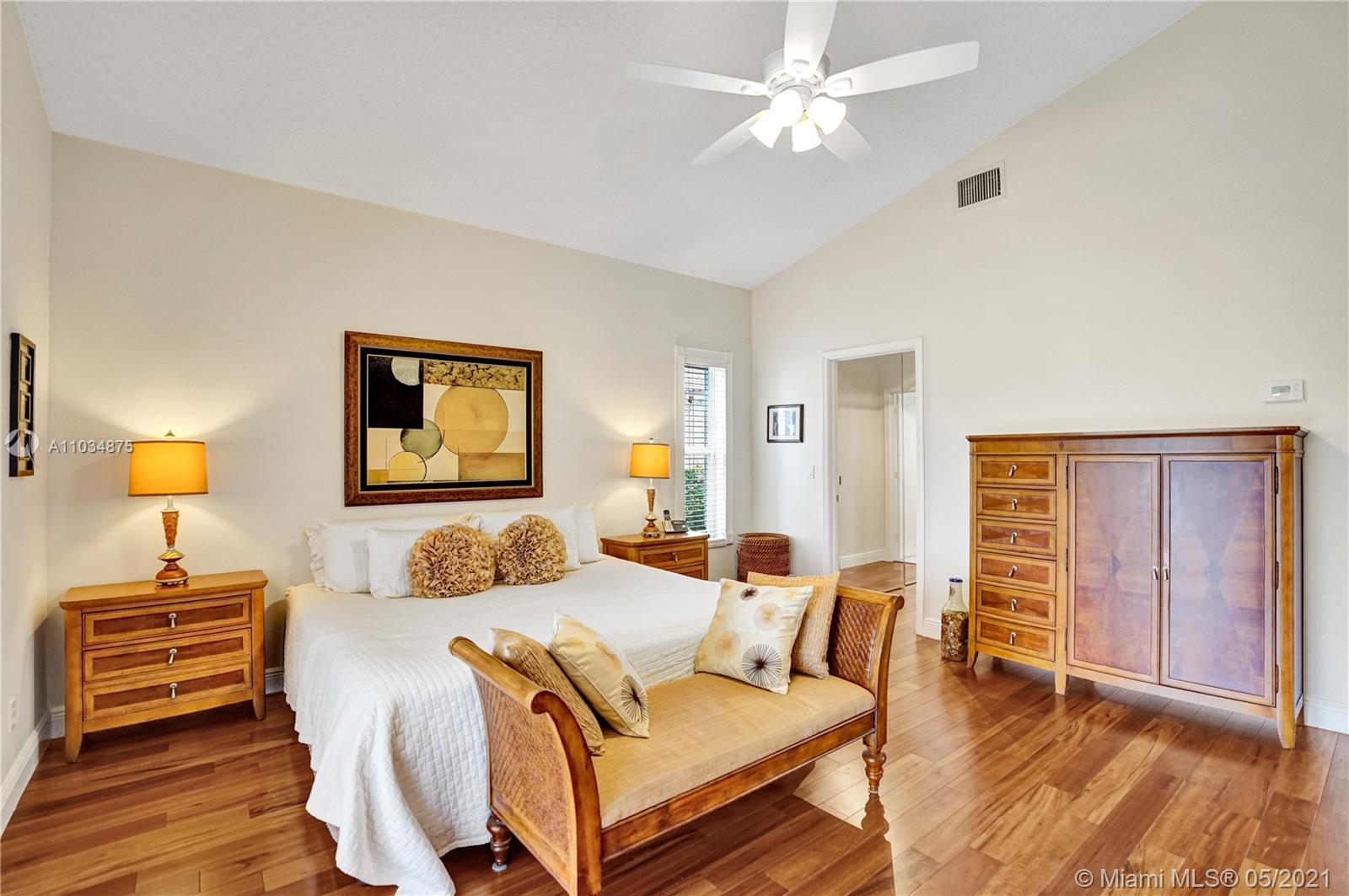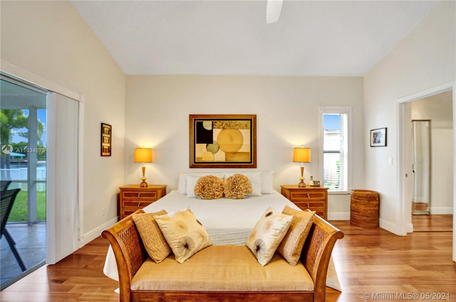 This spacious pool home sits on a premium oversized lot, boasting 133 feet of endless views & waterfront enjoyment. Unique architecture featuring a bright interior & dramatic 18 ft ceilings. This smart floor plan offers a ground level master suite, updated bath with marble finishes, whirlpool tub & separate stall shower w/glass enclosure. Cooking & entertaining is a pleasure in the BRAND NEW KITCHEN, featuring a generous center island & quartz counters w/waterfall design. Enjoy the outdoors in your covered patio, a fully screened pool & totally fenced yard with lake access for light boating in the largest lake in the area. Bonus features: Plantation shutters, Impact windows & accordion shutter protection, 2 zone A/C cooling. Ideal location, gated access, walking distance to park & pool!